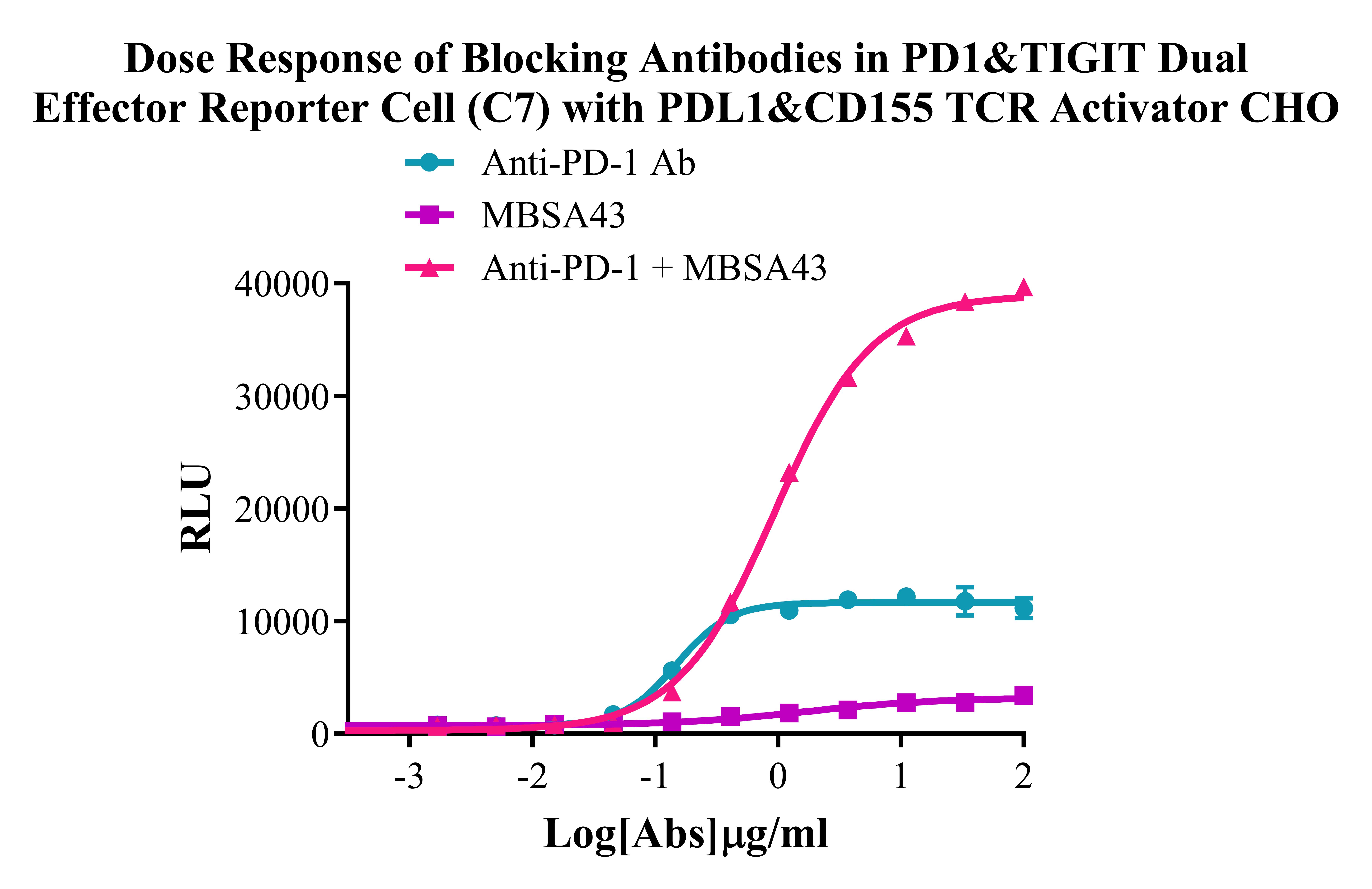 Figure 2. Dose Response of Blocking Antibodies in PD-1&TIGIT Dual Effector Reporter Cell (C7) With PD-L1&CD155/ TCR Activator CHO.