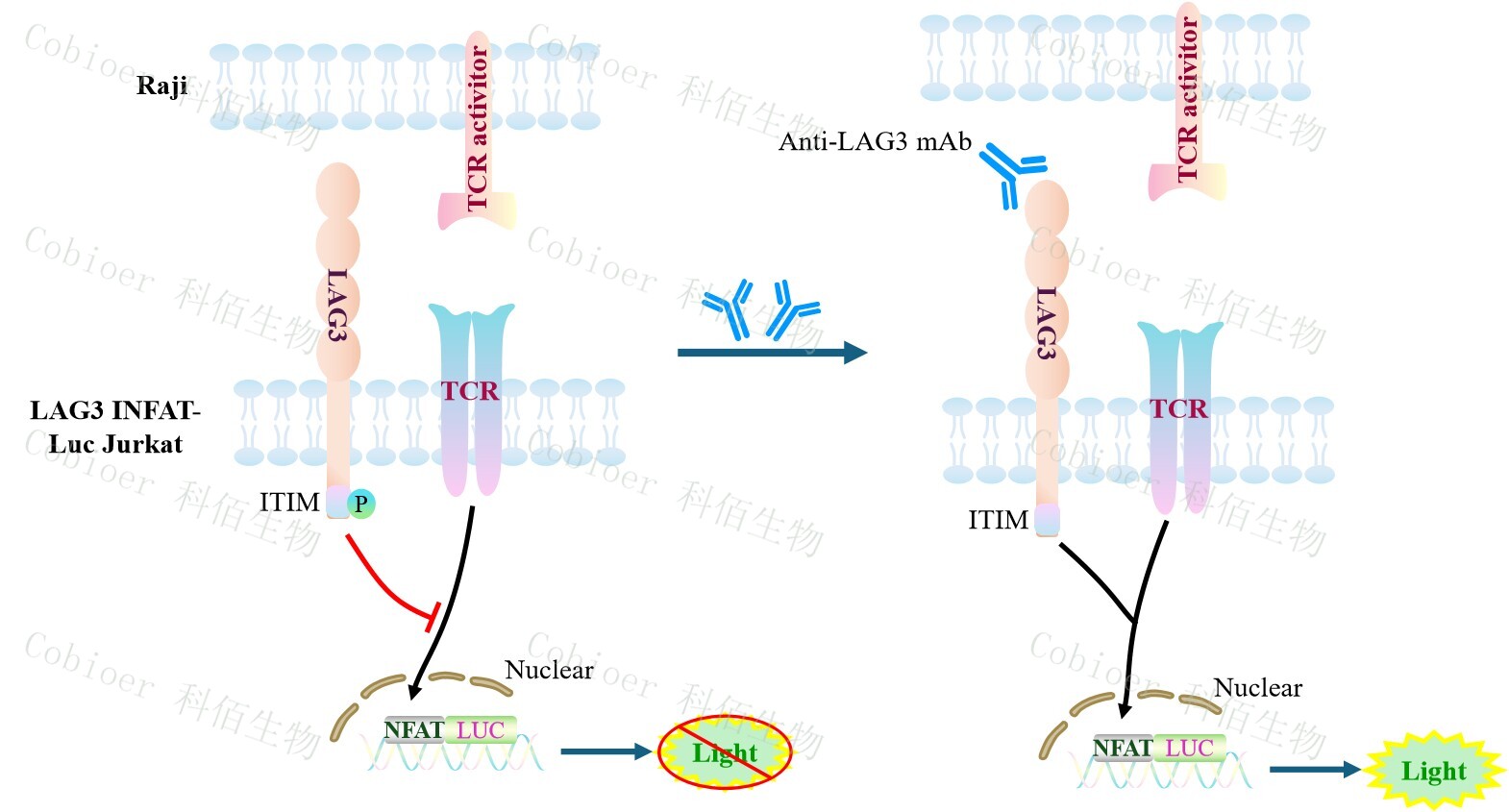Figure 1: LAG3 NFAT-Luc Jurkat 細(xì)胞模型原理圖