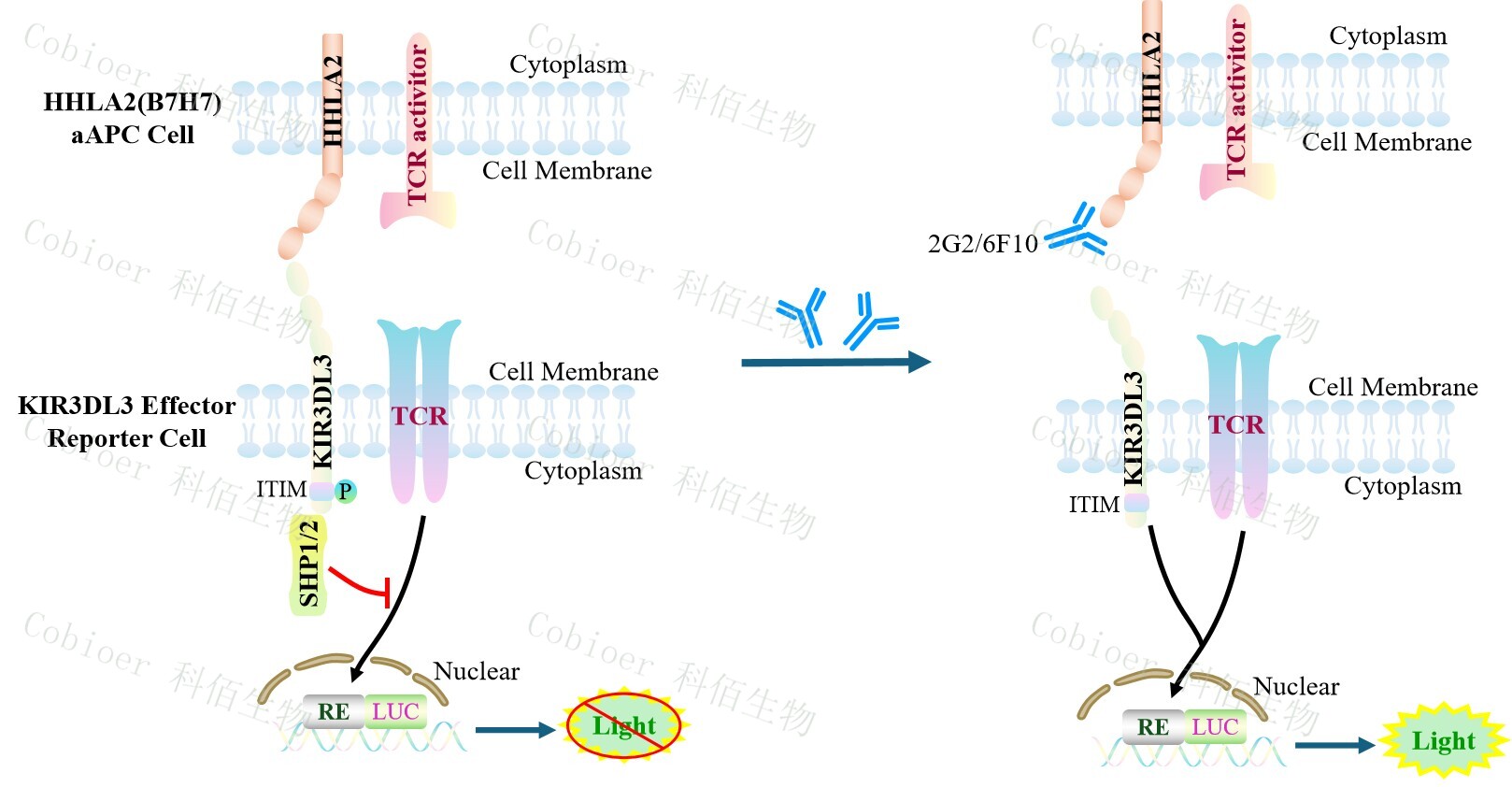 KIR3DL3 Effector Reporter Cell 報(bào)告基因藥靶模型很好的模擬了體內(nèi) KIR3DL3 的信號 轉(zhuǎn)導(dǎo)過程,原理見下圖所示。![]() Figure 1. KIR3DL3 Effector Reporter Cell 模型原理圖 |