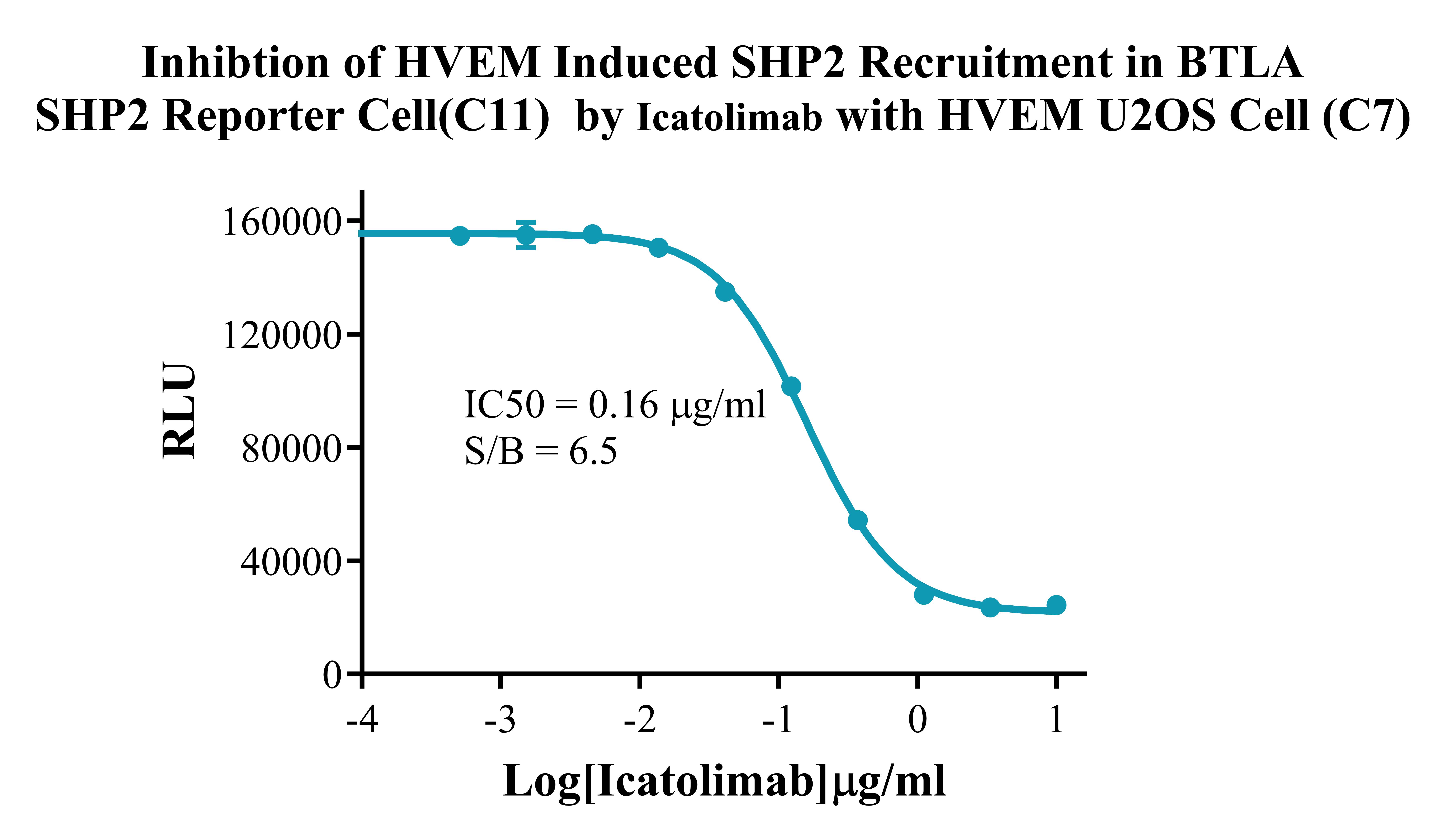 Figure 2. Inhibtion of HVEM Induced SHP2 Recruitment In BTLA SHP2 Reporter Cell (C11) By Icatolimab with HVEM U2OS Cell (C7).