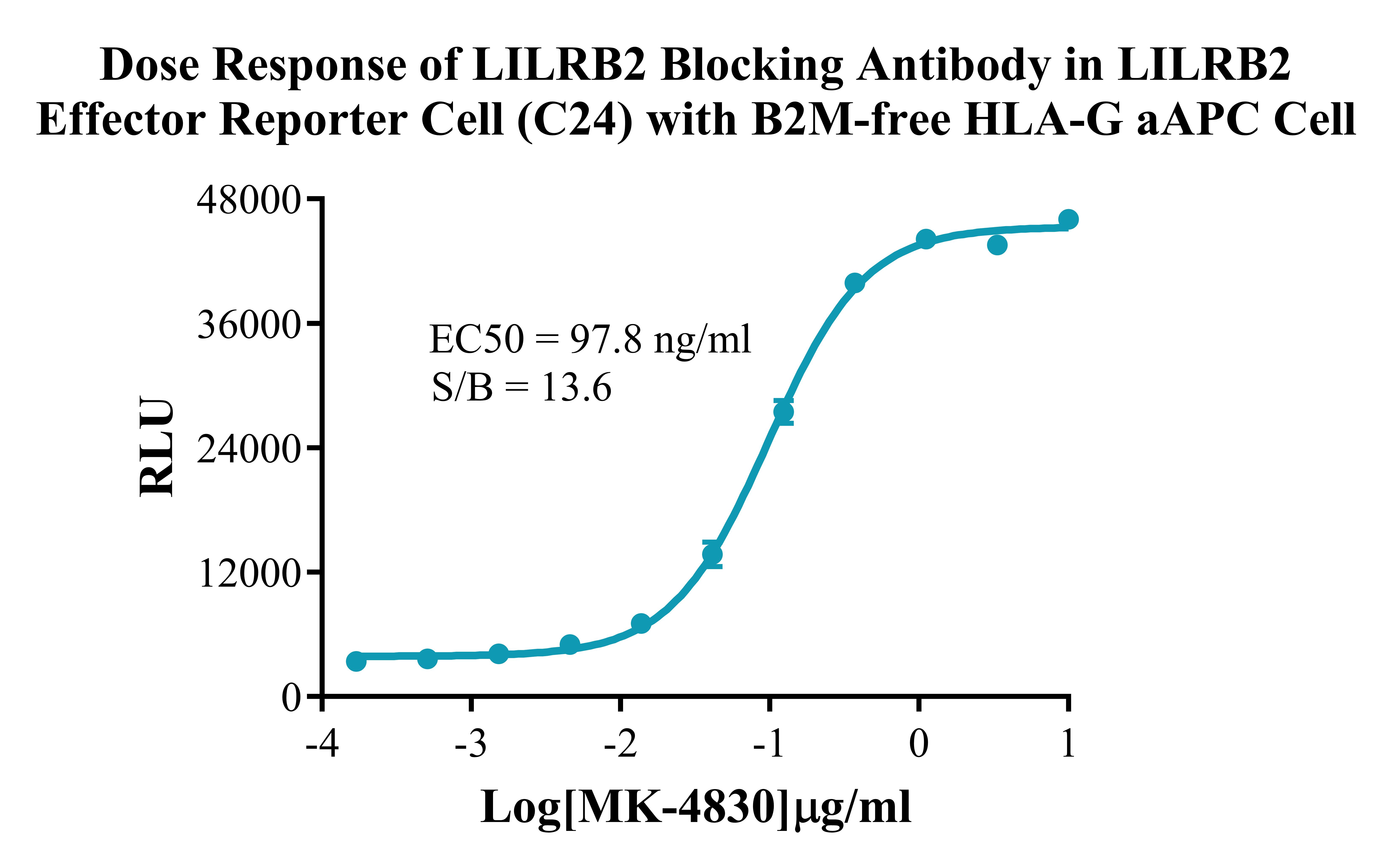 Figure 3. Dose Response of LILRB2 Blocking Antibody in LILRB2 Effector Reporter Cells (C24) With B2M-free HLA-G aAPC Cell. |