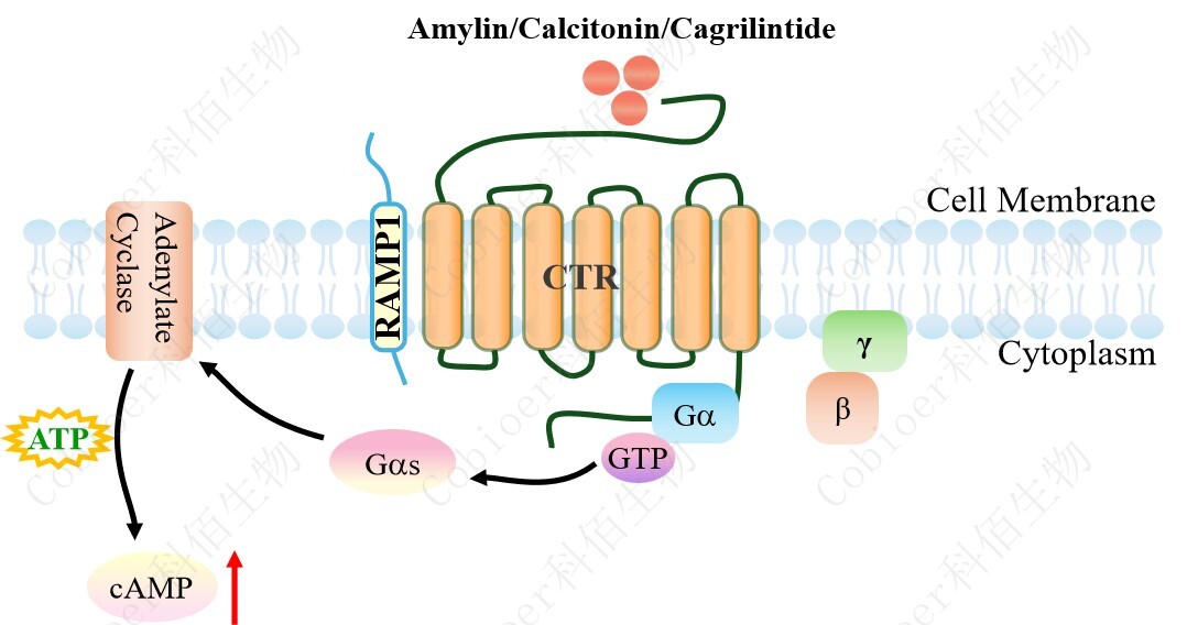降鈣素基因相關(guān)肽(CGRP)家族包括 CGRP 本身、降鈣素(CT)、腎上腺髓質(zhì)素 (AM)和胰島淀粉樣肽(AMY)。 胰淀素(Amylin)受體的三種類型的已被確定,即 AMY1,AMY2 和 AMY3。 |