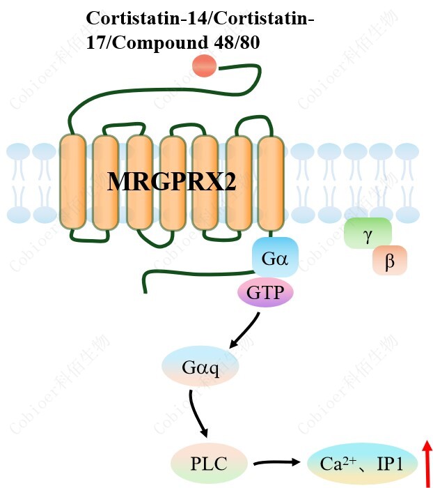 MRGPRX2 Gα15 HEK293 細(xì)胞藥靶模型很好的模擬了體內(nèi) MRGPRX2&Gα15 的信號轉(zhuǎn) 導(dǎo)過程,原理見圖所示。