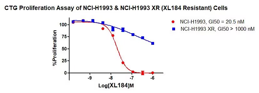 Figure 1. CTG Proliferation Assay of NCI-H1993&NCI-H1993 XR (XL184 Resistant) Cells.