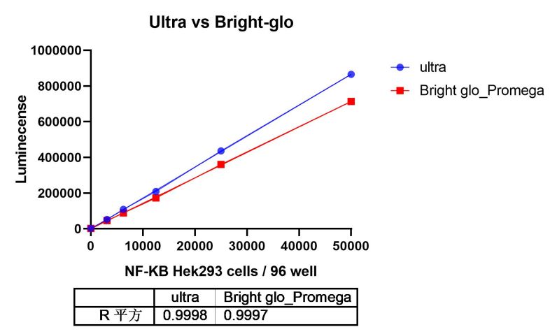Ultra luciferase detection kit provides an assay reagent that generates ultra-bright signal in the presence of firefly luciferase. The assay reagent is prepared by mixing substrate and cell lysis buffer |