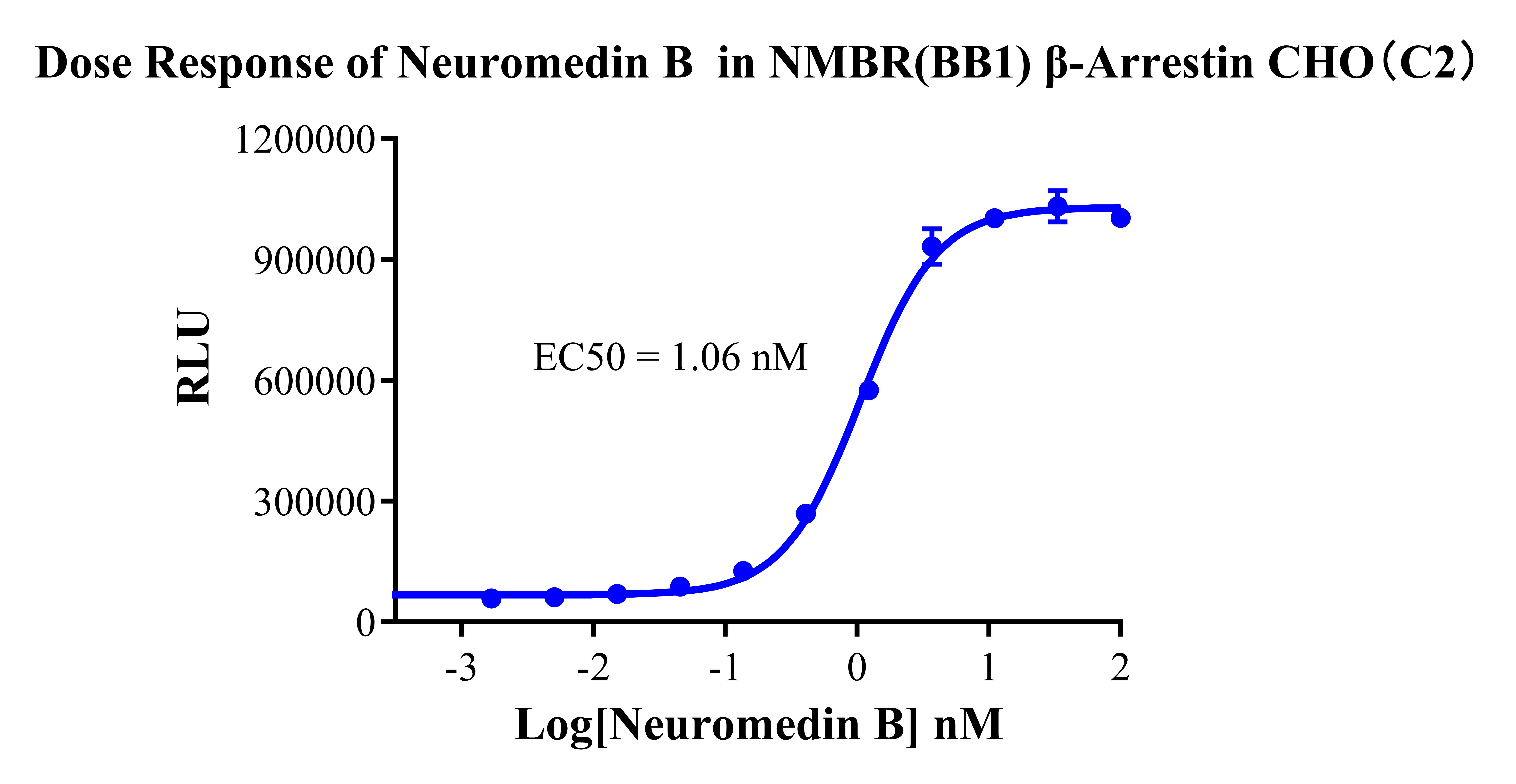 NMBR(BB1) β-Arrestin CHO 報(bào)告基因藥靶模型很好的模擬了體內(nèi) NMBR/β-Arrestin 的信號(hào)轉(zhuǎn)導(dǎo)過(guò)程,原理見(jiàn)下圖所示。當(dāng)缺乏配體刺激時(shí),β-Arrestin 不與 NMBR 結(jié)合,融合β- Arrestin 的熒光素酶處于失活構(gòu)象,當(dāng) NMBR 遭遇配體刺激時(shí),融合熒光素酶報(bào)告基因的 β-Arrestin 被招募,使熒光素酶報(bào)告基因處于激活狀態(tài),加入其底物后發(fā)光信號(hào)增強(qiáng)。![]() Figure 1. NMBR(BB1) β-Arrestin CHO 細(xì)胞模型原理圖 |