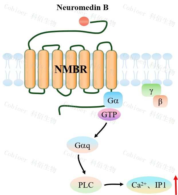 神經(jīng)介素 B 受體(NMBR)是一種廣泛分布于中樞神經(jīng)系統(tǒng)(如調(diào)控焦慮與攝食的下 丘腦、杏仁核)、外周組織(如肺、胃腸平滑?。┘岸喾N腫瘤(包括小細胞肺癌、膠質(zhì)瘤) 中的 G 蛋白偶聯(lián)受體(GPCR),其特異性結(jié)合配體神經(jīng)介素 B(NMB)或蛙皮素后,主 要激活 Gαq/11-PLCβ 信號級聯(lián),觸發(fā) IP3 介導(dǎo)的 Ga 2+釋放與 DAG-PKC 驅(qū)動的 ERK 磷酸化, 進而調(diào)控細胞增殖、炎癥因子釋放(如 TNF-α/IL-6)及平滑肌收縮;該受體在生理層面參 與攝食抑制(下丘腦 POMC 神經(jīng)元激活)與痛覺調(diào)節(jié)(增強阿片鎮(zhèn)痛),但病理狀態(tài)下通 過促進腫瘤增殖(如肺癌自分泌環(huán)激活 PI3K/AKT)、血管新生(膠質(zhì)瘤 VEGF 分泌)和 免疫微環(huán)境重塑(募集腫瘤相關(guān)巨噬細胞)驅(qū)動疾病進展,同時介導(dǎo)哮喘的氣道高反應(yīng)性 與腸易激綜合征的胃腸動力紊亂,當(dāng)前其治療價值聚焦于拮抗劑用于抗腫瘤、抗炎(緩解 支氣管痙攣)及激動劑治療中樞代謝性疾?。ㄈ绶逝郑_發(fā)兼具組織選擇性(外周拮 抗/中樞激動)與穩(wěn)定性的藥物仍是核心挑戰(zhàn)。 | |