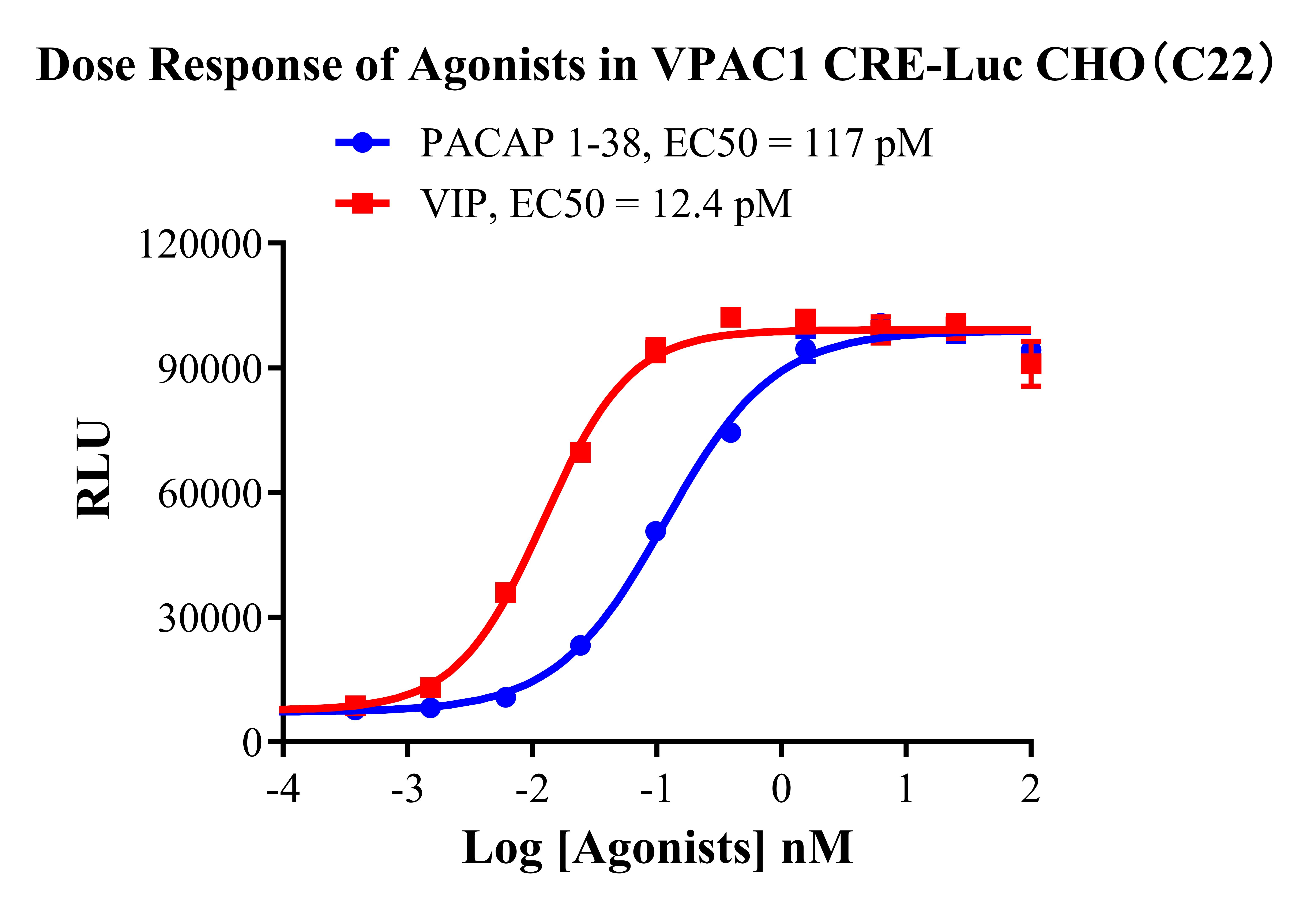 VPAC1 CRE-Luc CHO 報告基因藥靶模型很好的模擬了體內(nèi) VPAC1 的信號轉(zhuǎn)導過程, 原理見下圖所示。![]() Figure 1. VPAC1 CRE-Luc CHO 細胞模型原理圖 |