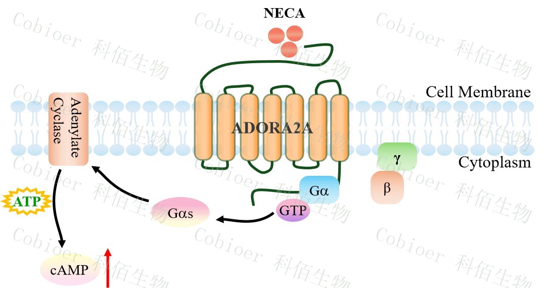 cAMP 在 G 蛋白偶聯(lián)受體(GPCR)信號轉(zhuǎn)導(dǎo)中是一種關(guān)鍵的第二信使。當(dāng)配體結(jié)合 到 GPCR,構(gòu)象發(fā)生變化,激活受體接著激活 G 蛋白,Gs 的激活導(dǎo)致腺苷酸環(huán)化酶調(diào)控 cAMP 的升高。