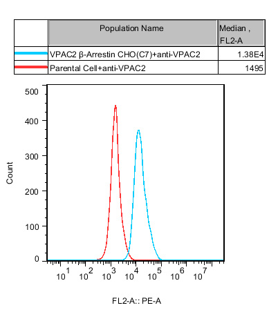 VPAC2 β-Arrestin CHO 報告基因藥靶模型很好的模擬了體內(nèi) VPAC2/β-Arrestin 的信號轉(zhuǎn)導(dǎo)過程,原理見下圖所示。當(dāng)缺乏配體刺激時,β-Arrestin 不與 VPAC2 結(jié)合,融合β- Arrestin 的熒光素酶處于失活構(gòu)象,當(dāng) VPAC2 遭遇配體刺激時,融合熒光素酶報告基因的 β-Arrestin 被招募,使熒光素酶報告基因處于激活狀態(tài),加入其底物后發(fā)光信號增強(qiáng)。![]() Figure 1. VPAC2 β-Arrestin CHO 細(xì)胞模型原理圖 |