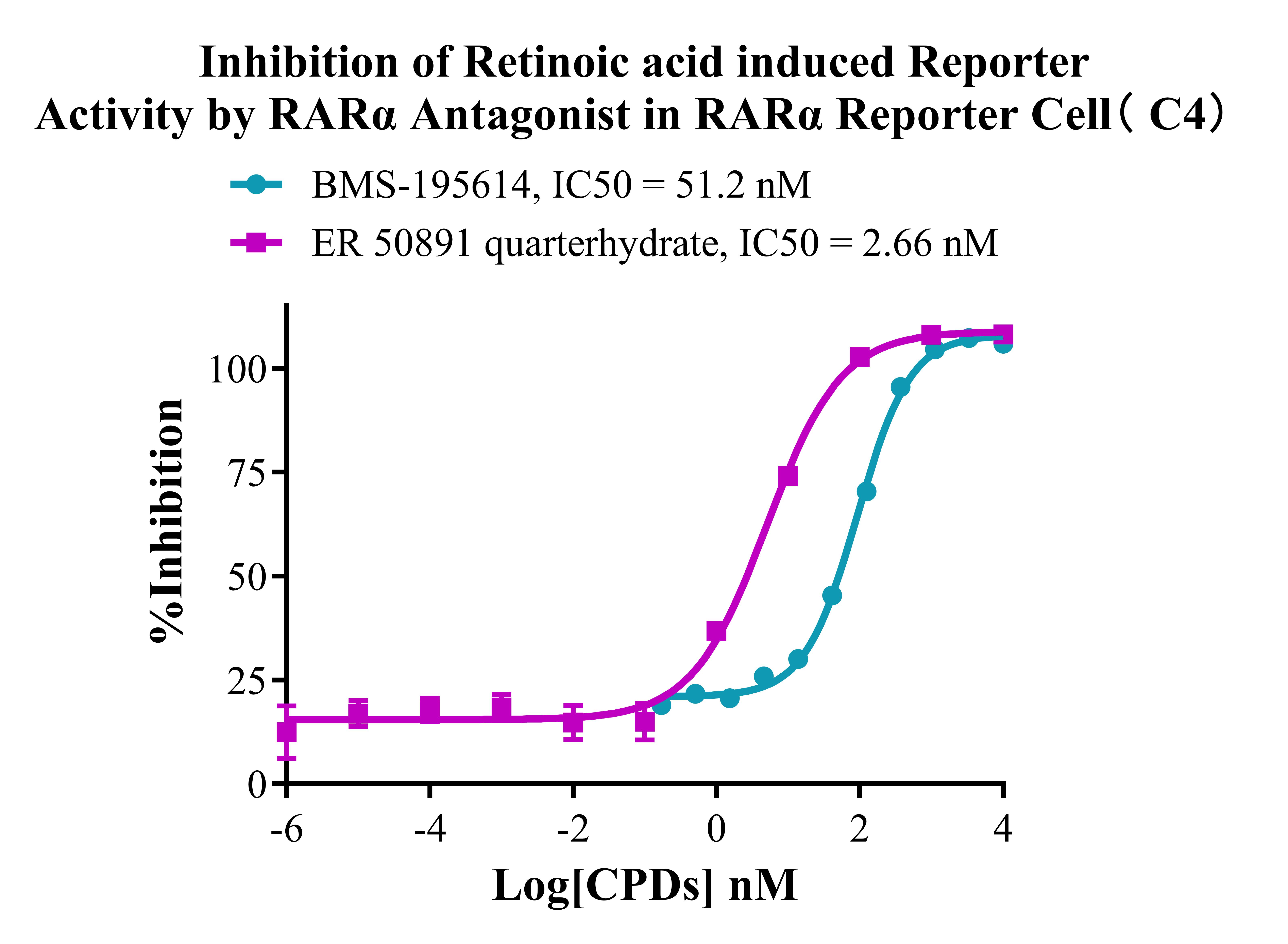 Figure 2. Inhibition of Retinoic acid induced Reporter Activity by RARα Antagonist in RARα Reporter Cell(C4).