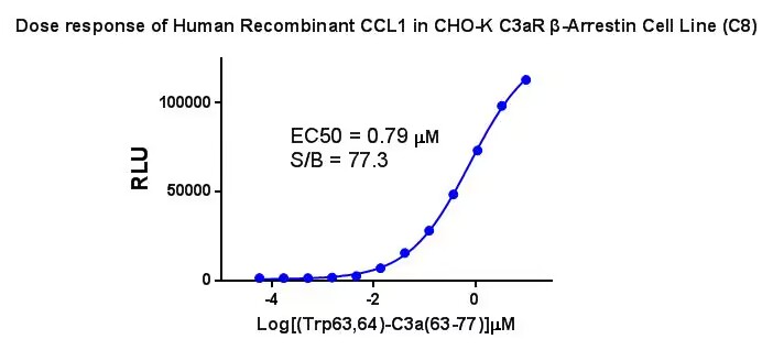 Figure 2. Dose response of Human Recombinant CCL1 in CHO-K C3aR β-Arrestin Cell Line (C8). |