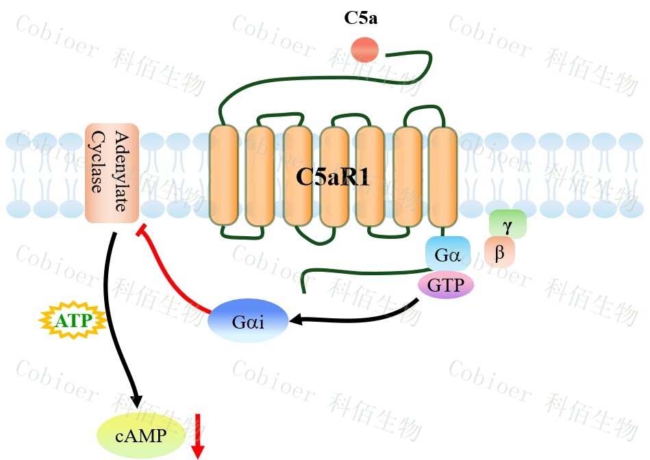 | 補體 C5a 是由補體系統(tǒng)經(jīng) C5 轉(zhuǎn)化酶裂解 C5 產(chǎn)生的強效炎癥介質(zhì),作為核心過敏毒素 通過結(jié)合受體 C5aR1/C5aR2 驅(qū)動中性粒細(xì)胞趨化、氧化爆發(fā)及炎性因子(IL-6/TNF-α)釋 放,在膿毒癥中誘發(fā)“細(xì)胞因子風(fēng)暴”,在自身免疫?。ㄈ珙愶L(fēng)濕關(guān)節(jié)炎)中促進(jìn)組織侵 蝕,在腫瘤微環(huán)境募集髓系抑制細(xì)胞(MDSC)介導(dǎo)免疫逃逸。 C5aR1(CD88)是補體過敏毒素 C5a 的高親和力 GPCR,主要表達(dá)于髓系細(xì)胞(中性 粒細(xì)胞、單核細(xì)胞、肥大細(xì)胞),通過激活 Gi/Gq 蛋白-PI3K/MAPK 通路驅(qū)動炎癥級聯(lián)反應(yīng)。 |