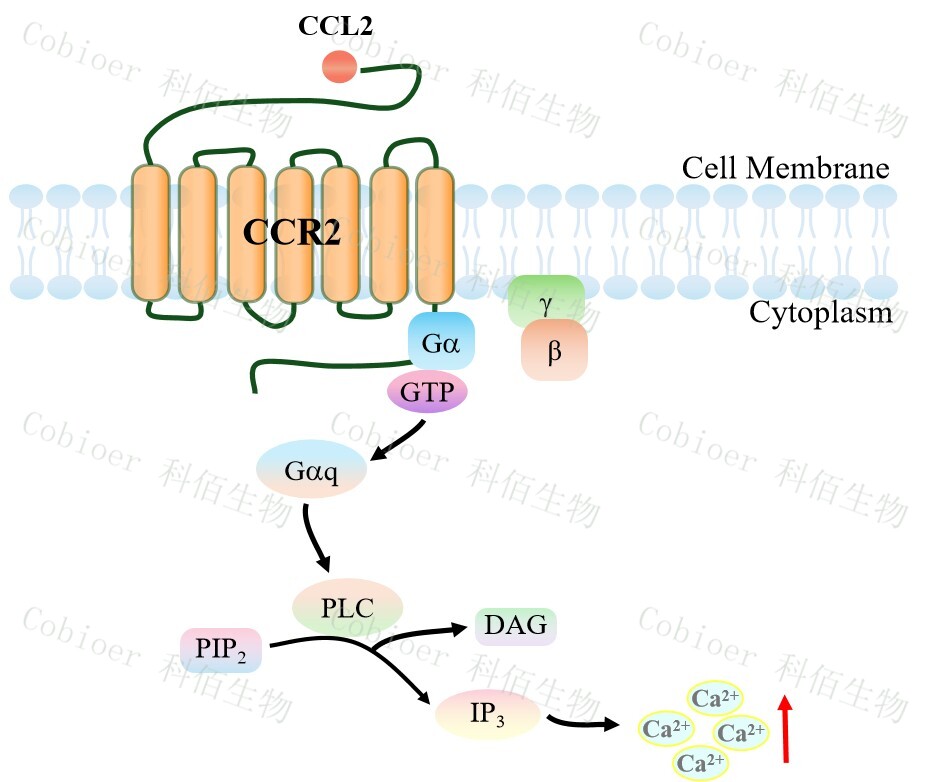 CCR2(C-C 趨化因子受體 2 型)是表達于單核細胞、巨噬細胞等免疫細胞表面的 G 蛋 白偶聯(lián)受體(GPCR),具有七次跨膜螺旋結構,胞外 N 端含有糖基化位點,胞內 C 端則 負責信號轉導的蛋白相互作用域。人 CCR2 蛋白由 374 個氨基酸構成,具有兩個主要剪接 變體:CCR2A 和 CCR2B,其中 CCR2B 是最常見的功能型形式。 |