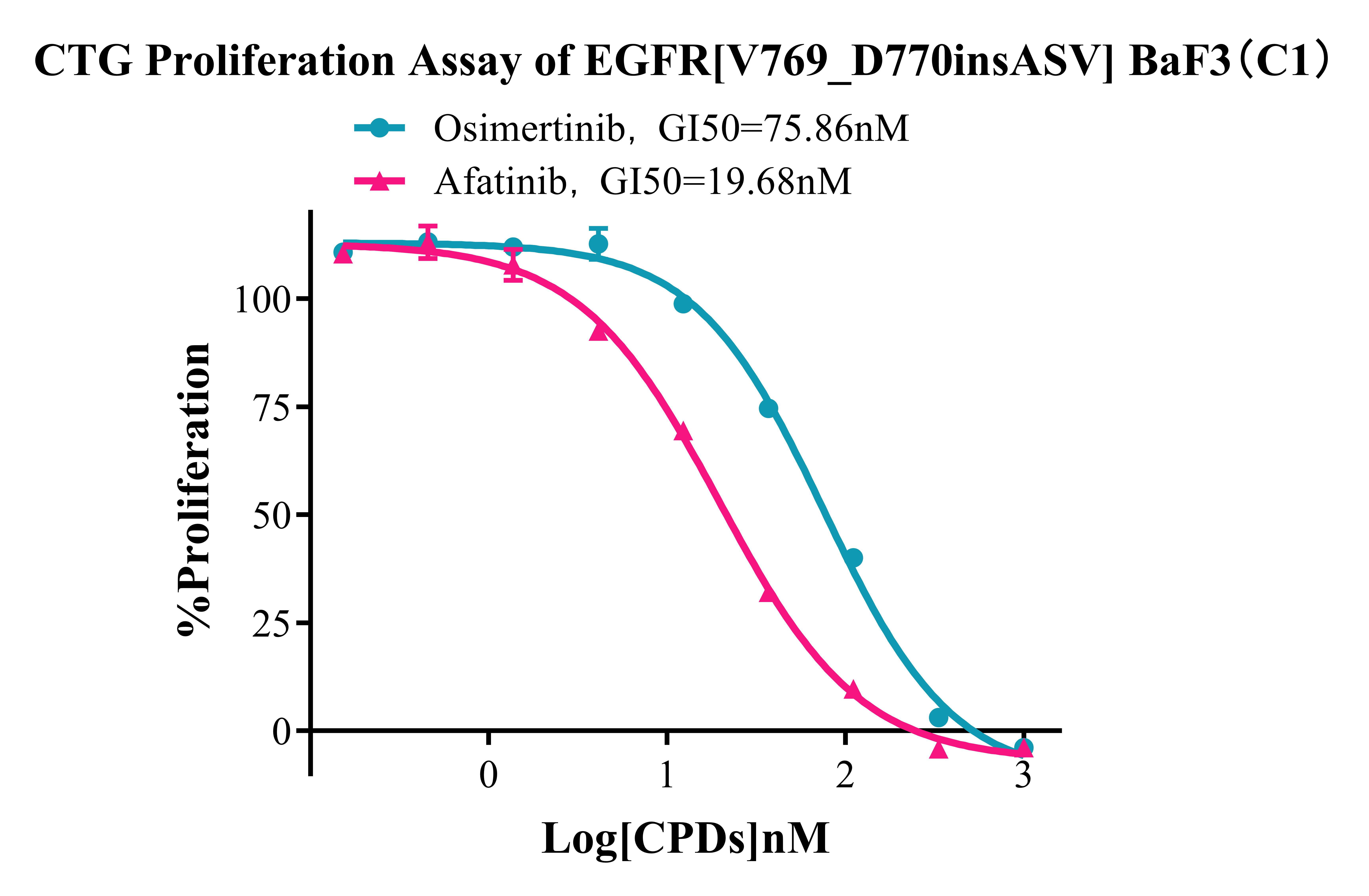 3. Anti-proliferation assay Figure 4 . CTG Proliferation Assay of EGFR [V769_D770insASV] BaF3(C1). |