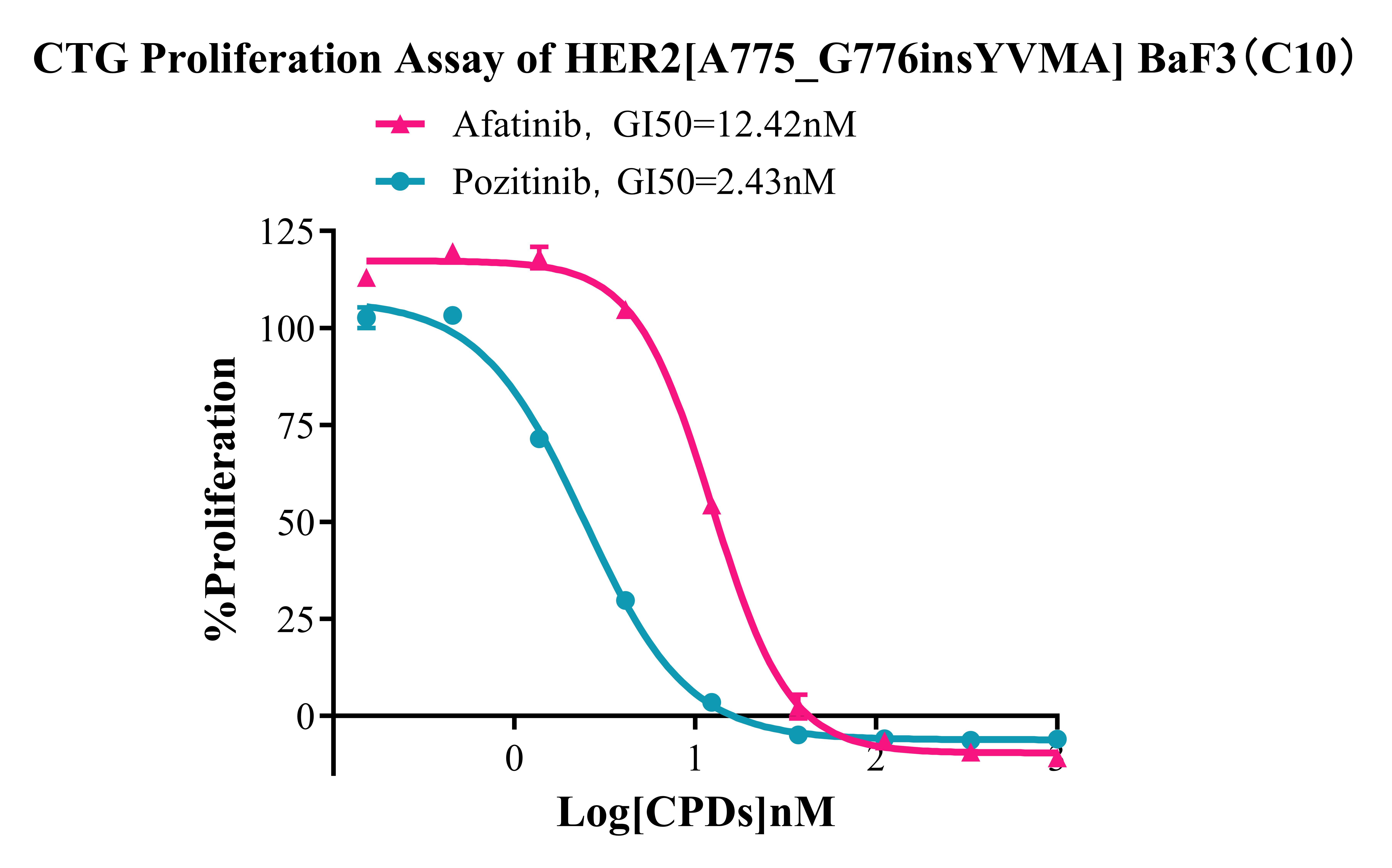 Figure 3. CTG Proliferation Assay of Her2[ A775_G776insYVMA] BaF3(C10).