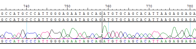 2. Sanger of ETV6-NTRK3 [G696A]/BaF3 Figure 2. SNP of ETV6-NTRK3-G696A/BaF3 Figure 3. Breakpoint of ETV6-NTRK3-G696A/BaF3 |