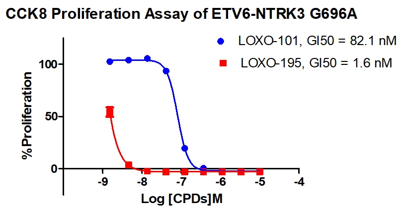 3. Anti-proliferation assay Figure 4. CCK8 Proliferation Assay of ETV6-NTRK3 G696A. |