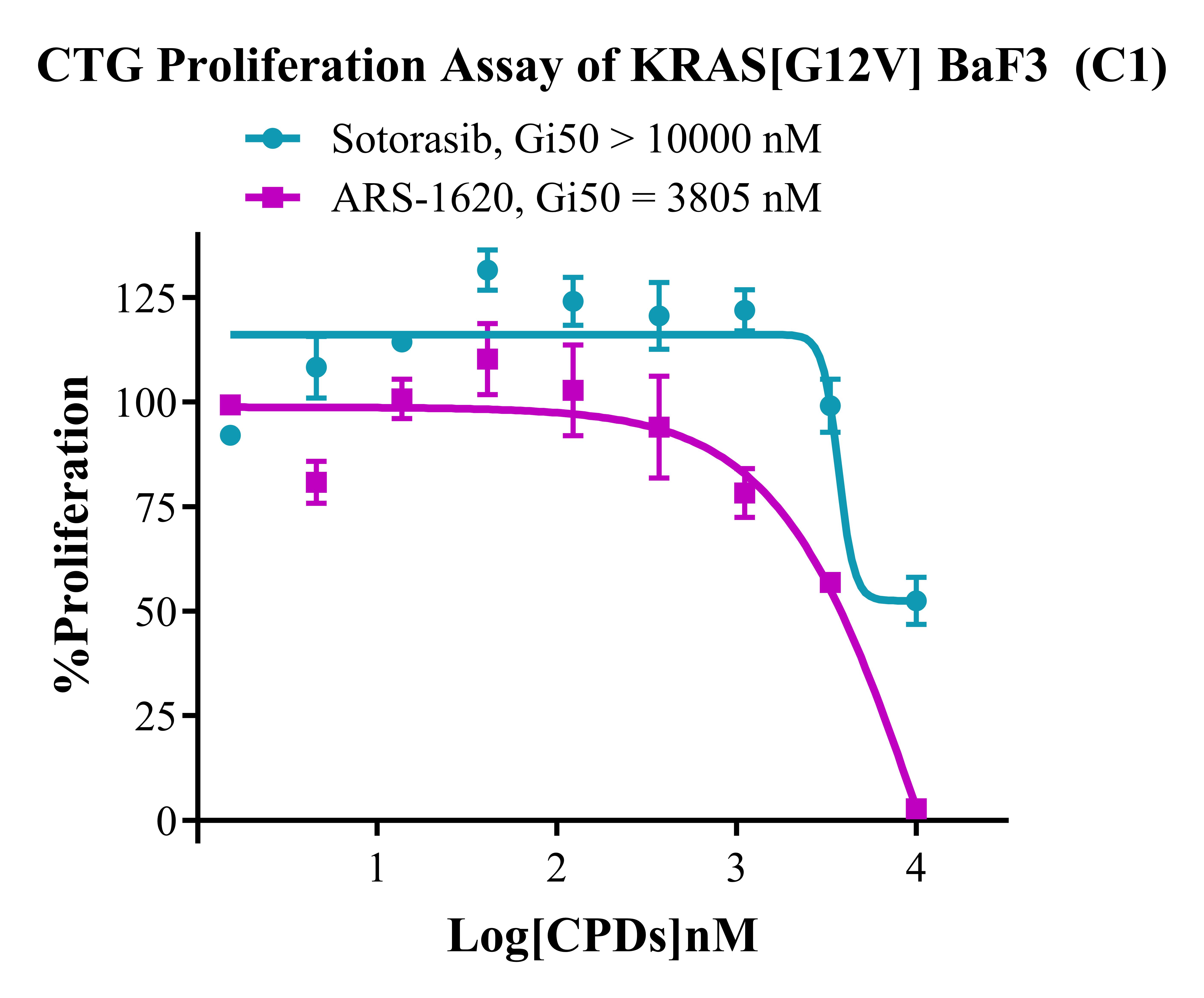 2.Anti-proliferation assay Figure 3. CTG Proliferation Assay of KRAS [G12V] BaF3(C1). |