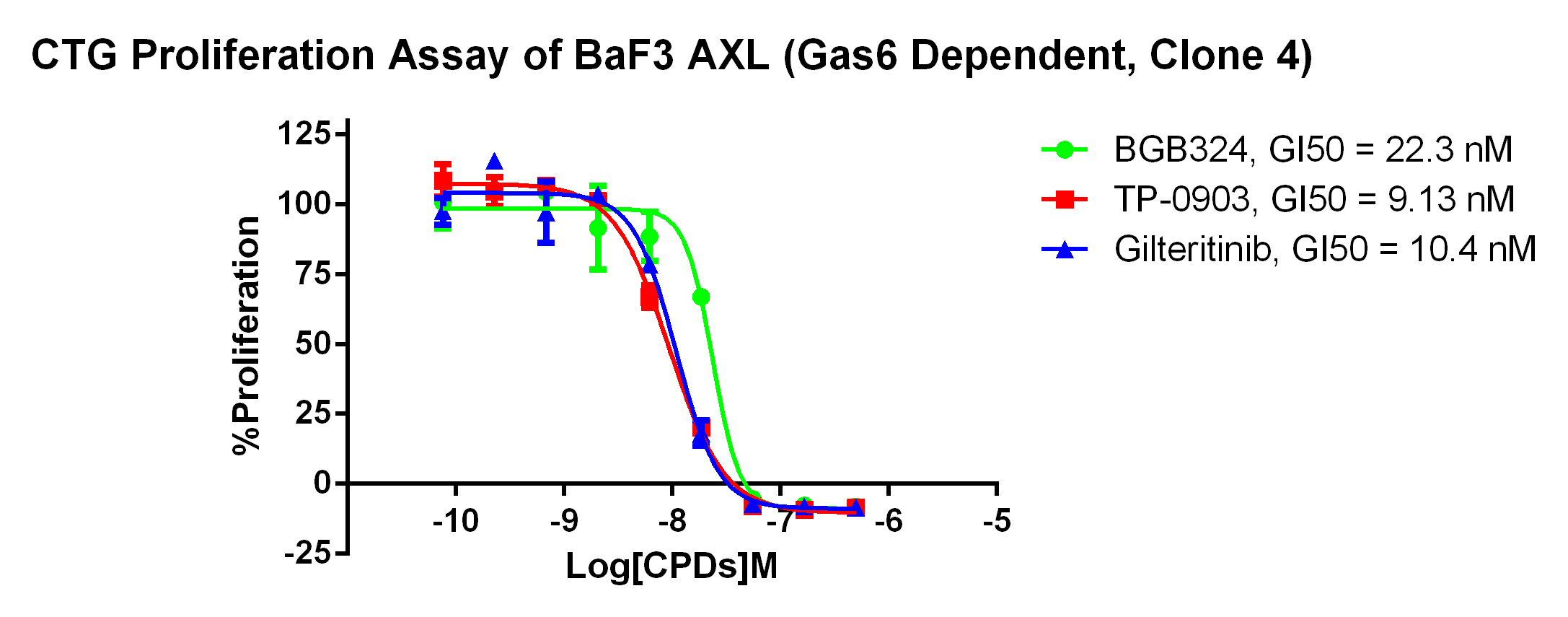 1. Anti-proliferation assay Figure . Anti-proliferation assay of three reference compounds on the AXL (Gas6 Dependent)/BaF3 Stable Cell Line. |