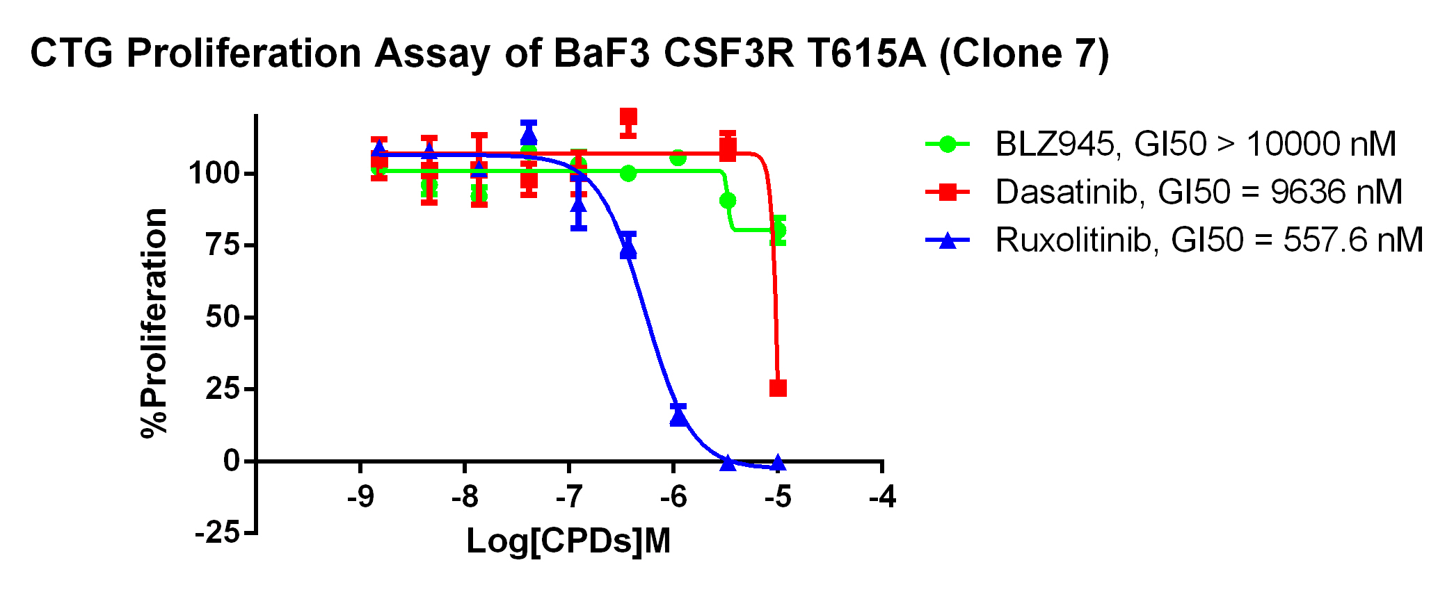 Figure 2. Anti-proliferation assay of three reference compounds on the CSF3R T615A/BaF3.