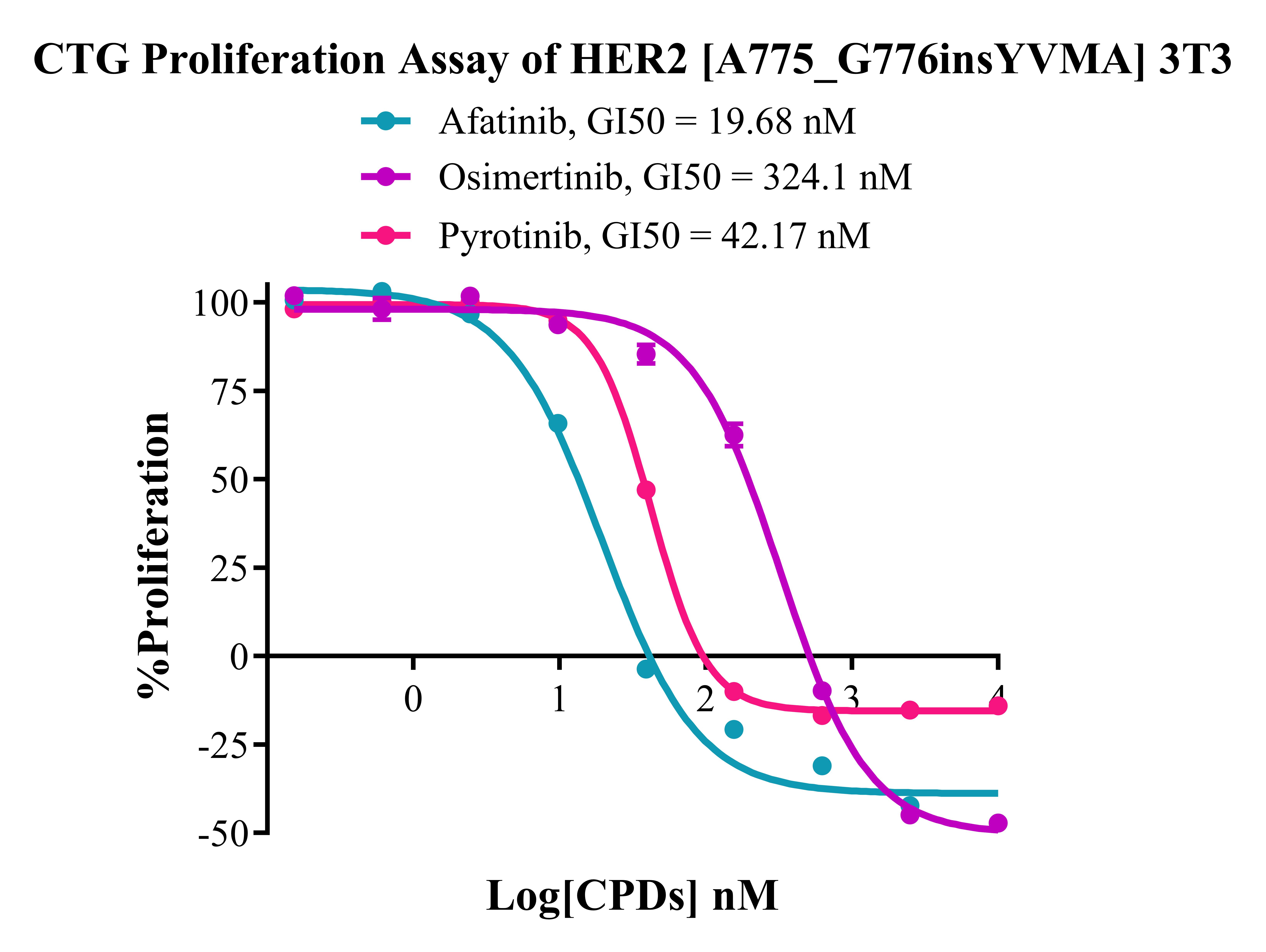 Figure 4. CTG Proliferation Assay of Her2 [A775_G776ins YVMA] 3T3. |