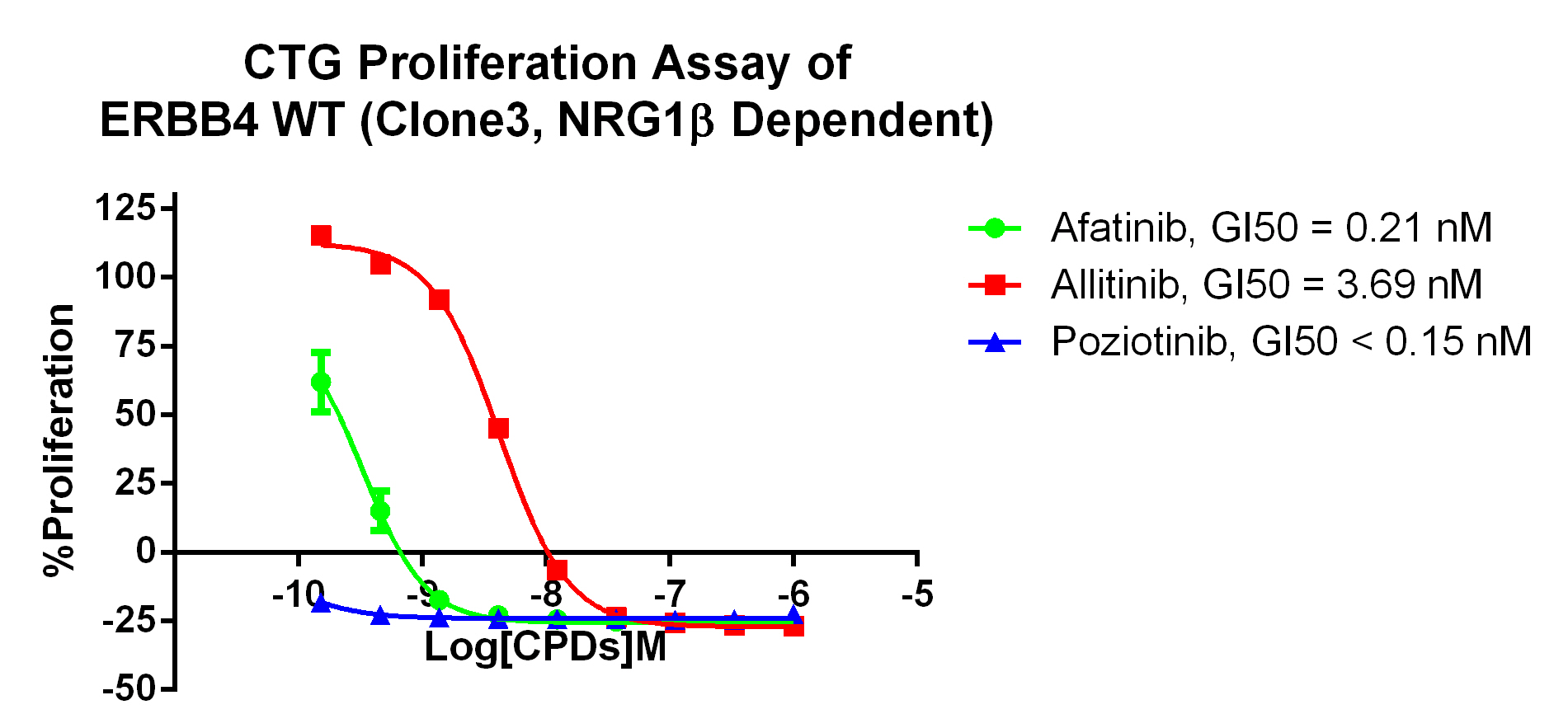 Figure 2. Anti-proliferation assay of three reference compounds on the ERBB4 WT(NRG1b Dependent)/BaF3 Stable Cell line.