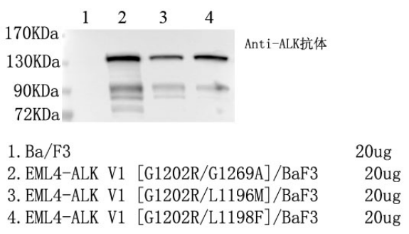 1.WB of EML4-ALK V1 [G1202R/G1269A] /BaF3 Figure 2.WB of EML4-ALK V1 [G1202R/G1269A] /BaF3 |