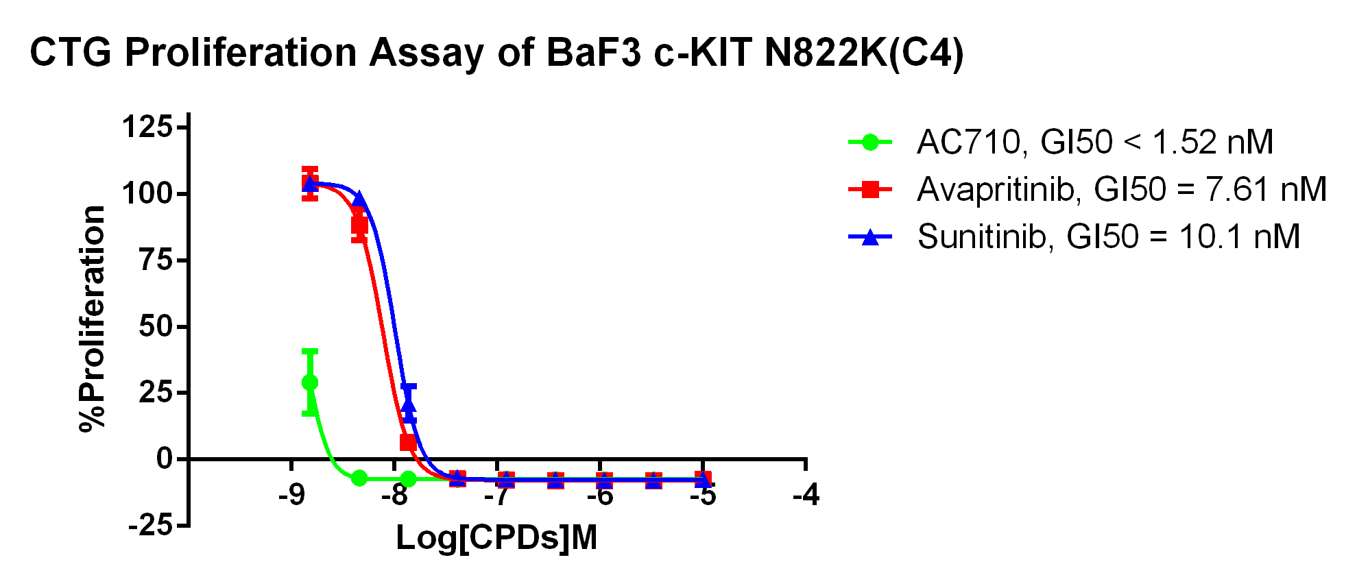 3. Anti-proliferation assay Figure 3. CTG Proliferation Assay of BaF3 c-KIT N822K(C4). |