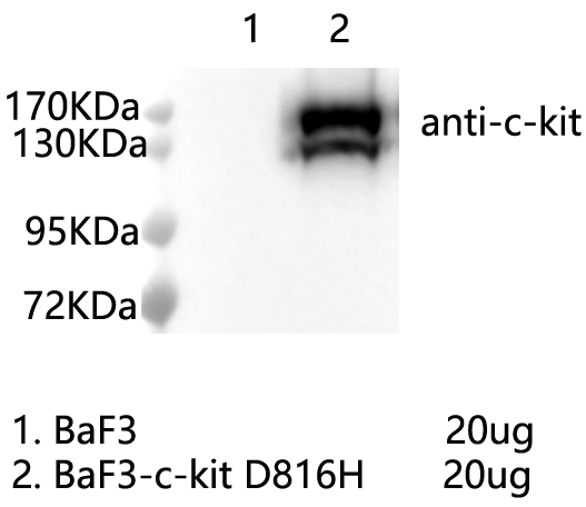 KIT D816H lies within the tyrosine kinase domain region 2 (exon 17) of the Kit protein (PMID: 19164557). D816H results in increased kinase activity, constitutive Kit phosphorylation, activation of Stat3 signaling, and transformation of cultured cells (PMID: 10362788, PMID: 11494148), and confers resistance to some Kit inhibitors (PMID: 25239608). |
