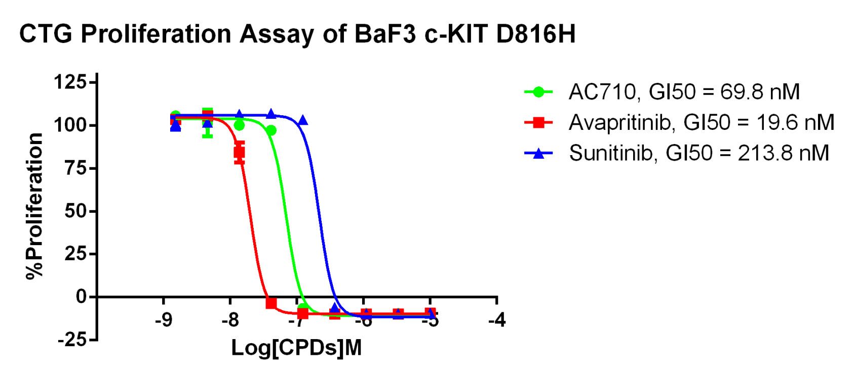 3. Anti-proliferation assay Figure 3. CTG Proliferation Assay of BaF3 C-KlT D816H. |
