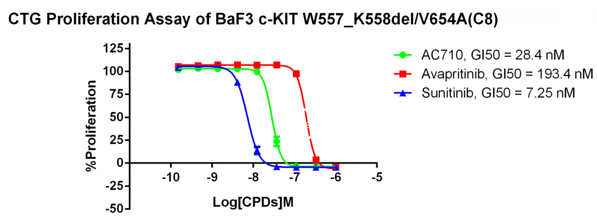 Figure 4. CTG Proliferation Assay of BaF3 C-KIT W557_ K558del/V654A(C8).
