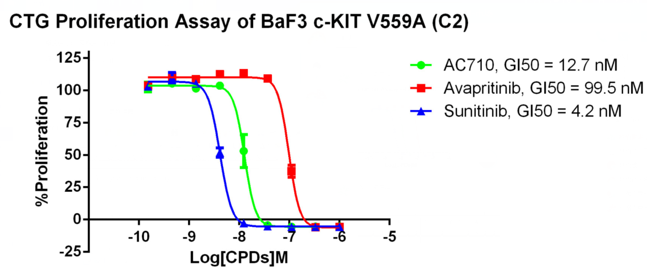 2. Anti-proliferation assay Figure 2. CTG Proliferation Assay of BaF3 c-KIT V559A (C2). |