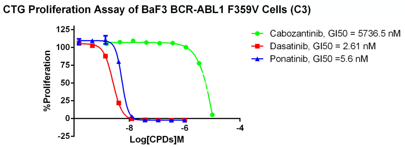 3. Anti-proliferation assay Figure 4. CTG Proliferation Assay of BaF3 BCR-ABL1 F359V Cells (C3). |