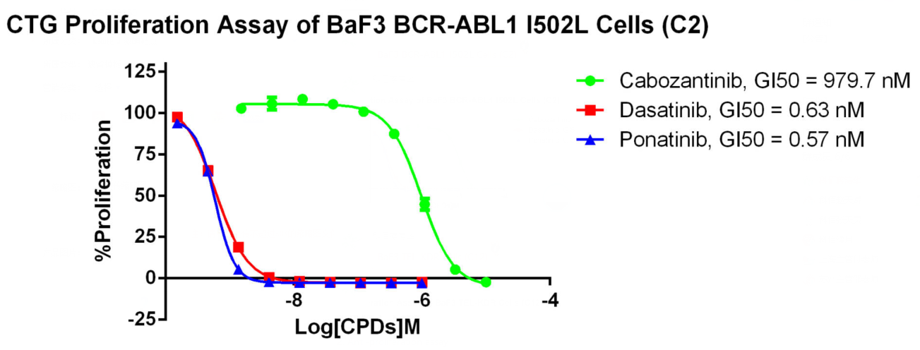 3. Anti-proliferation assay Figure 4. CTG Proliferation Assay of BaF3 BCR-ABL1 I502L Cells (C2). |