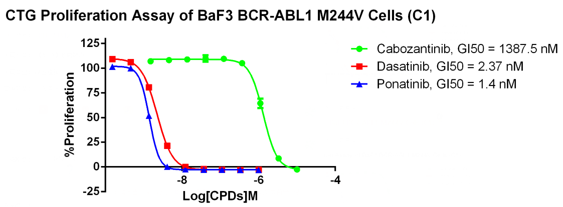 3. Anti-proliferation assay Figure 4. CTG Proliferation Assay of BaF3 BCR-ABL1 M244V Cells (C1). |