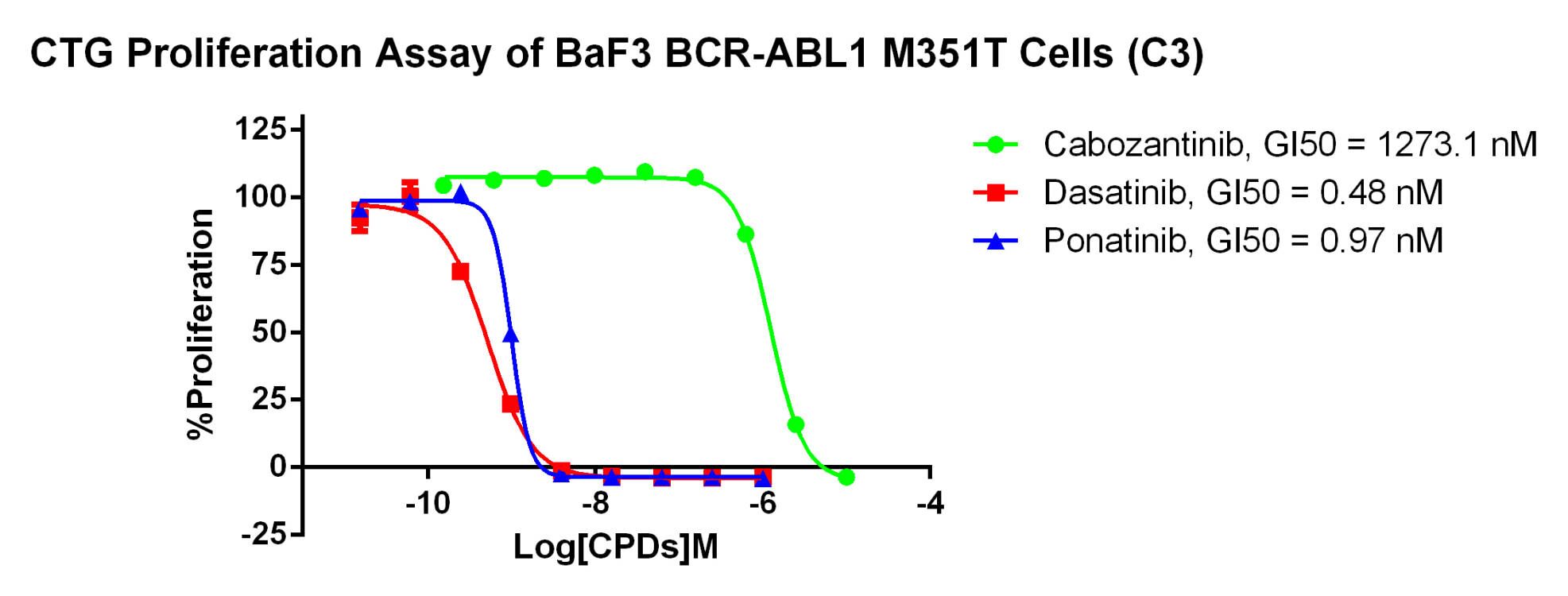 3. Anti-proliferation assay Figure 4. CTG Proliferation Assay of BaF3 BCR-ABL1 M351T Cells (C3). |
