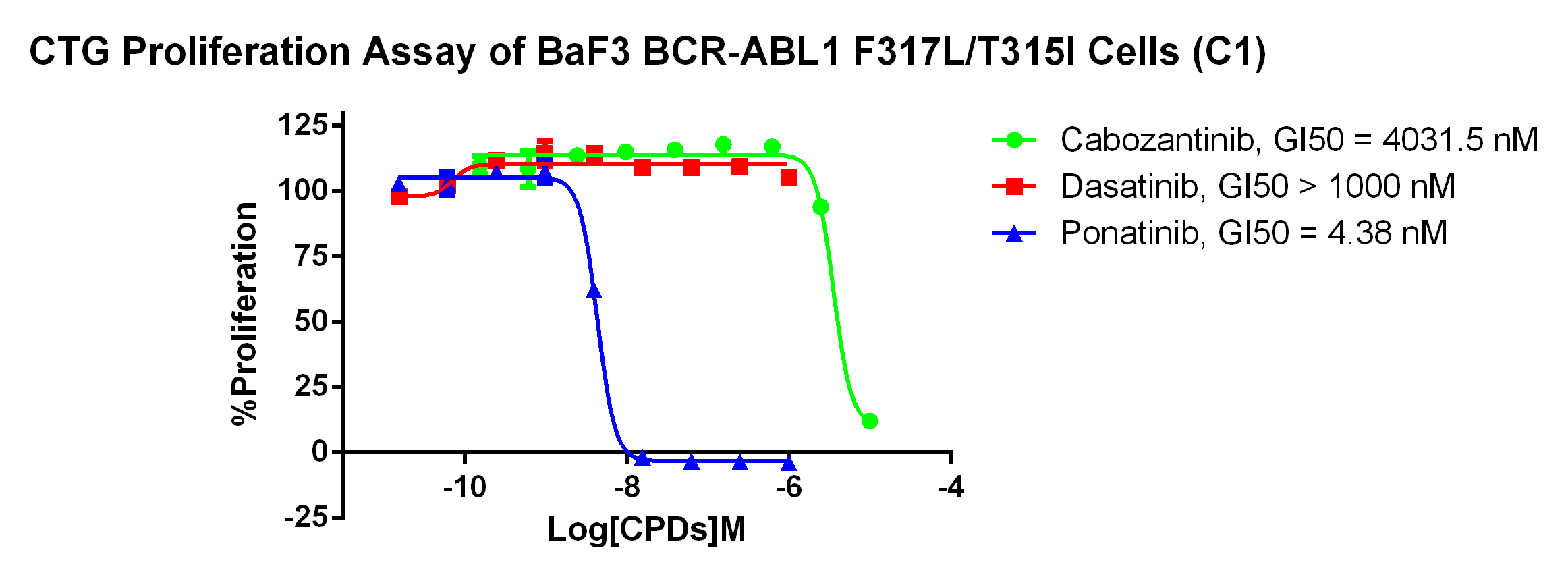 3. Anti-proliferation assay Figure 4. CTG Proliferation Assay of BaF3 BCR-ABL1 F317L/T315I Cells (C1). |