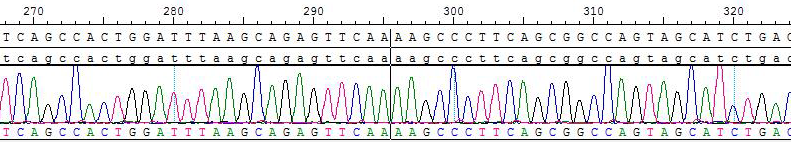 2. Sanger of BCR-ABL1 [F359V/T315I]/BaF3 Figure 2. BCR-ABL1 [F359V/T315I]/BaF3 F359V Figure 3. BCR-ABL1 [F359V/T315I]/BaF3 T315I Figure 4. BCR-ABL1 [F359V/T315I]/BaF3 Fusion |
