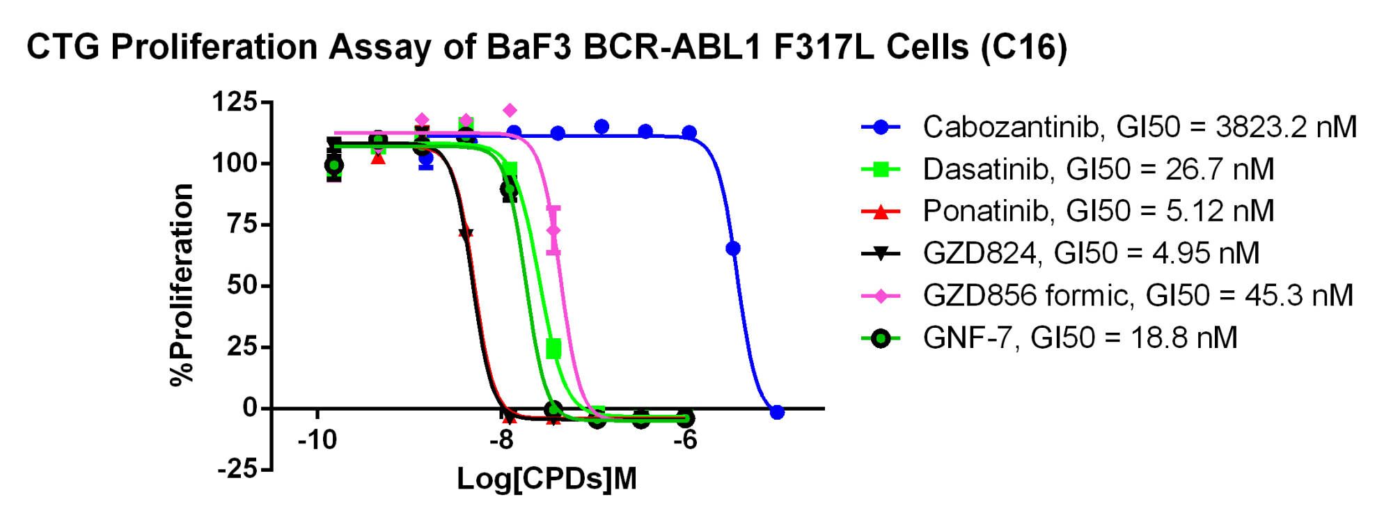 Figure 4. CTG Proliferation Assay of BaF3 BCR-ABL1 F317L Cells (C16).