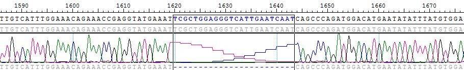 1.Sanger of PDGFRA V658A-R558_I565del/Baf3 Figure 1. PDGFRA V658A-R558_I565del/Baf3 V658A Figure 2. PDGFRA V658A-R558_I565del/Baf3 Del24 |