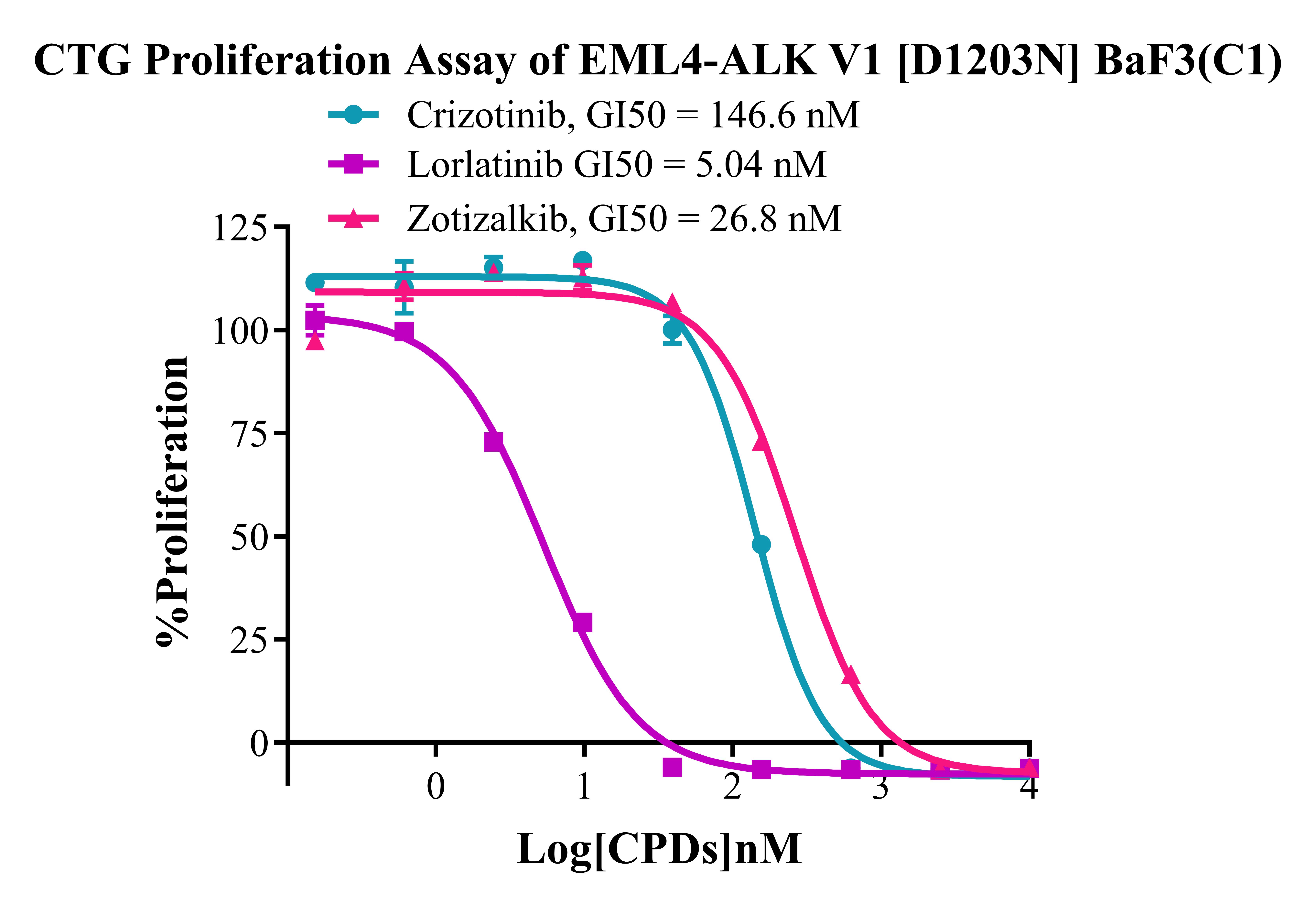 2. Anti-proliferation assay Figure 4. CTG Proliferation Assay of EML4-ALK V1 [D1203N] BaF3(C1). |