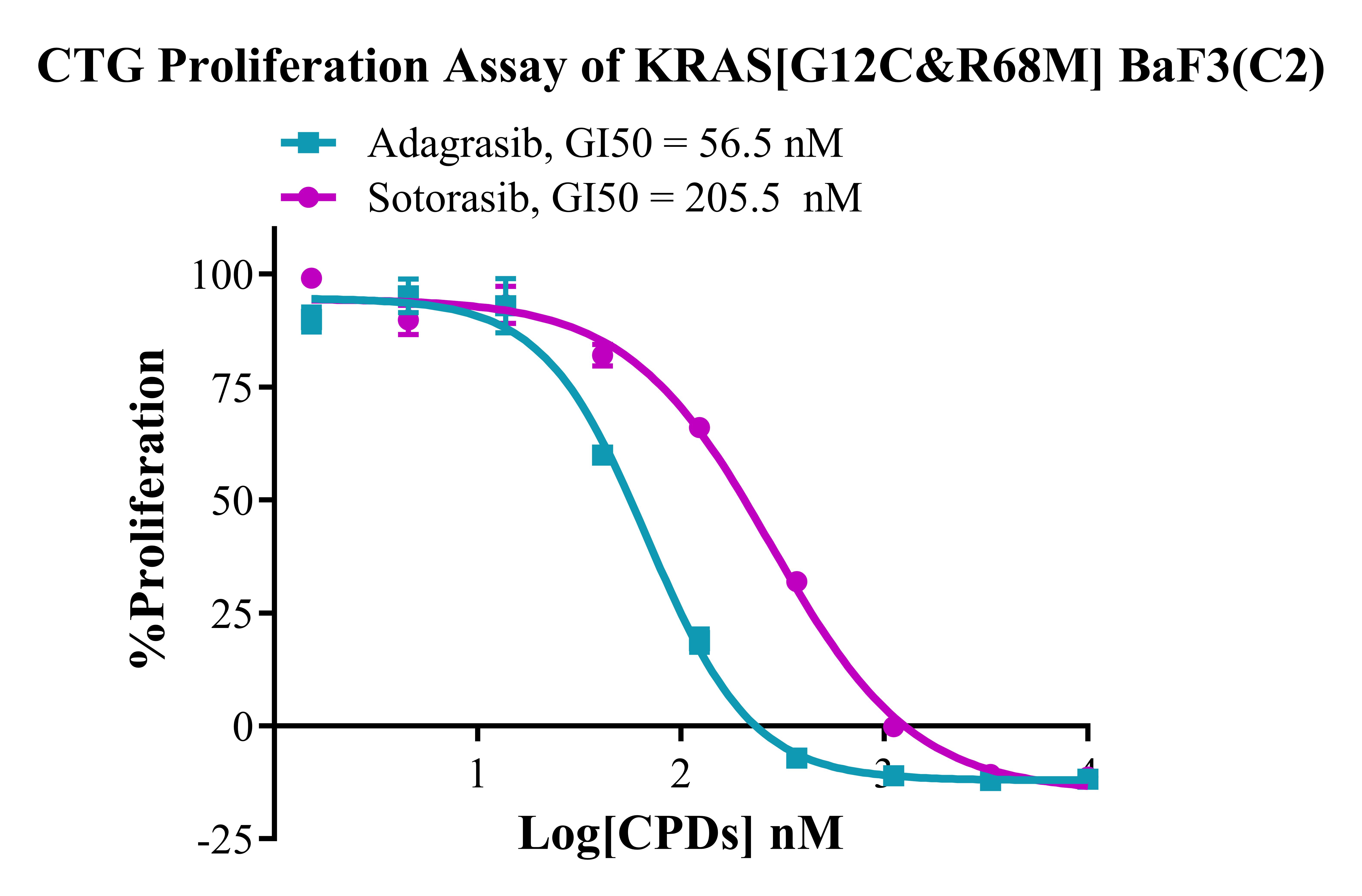 Figure 3. CTG Proliferation Assay of KRAS[G12C&R68M] BaF3(C2).
