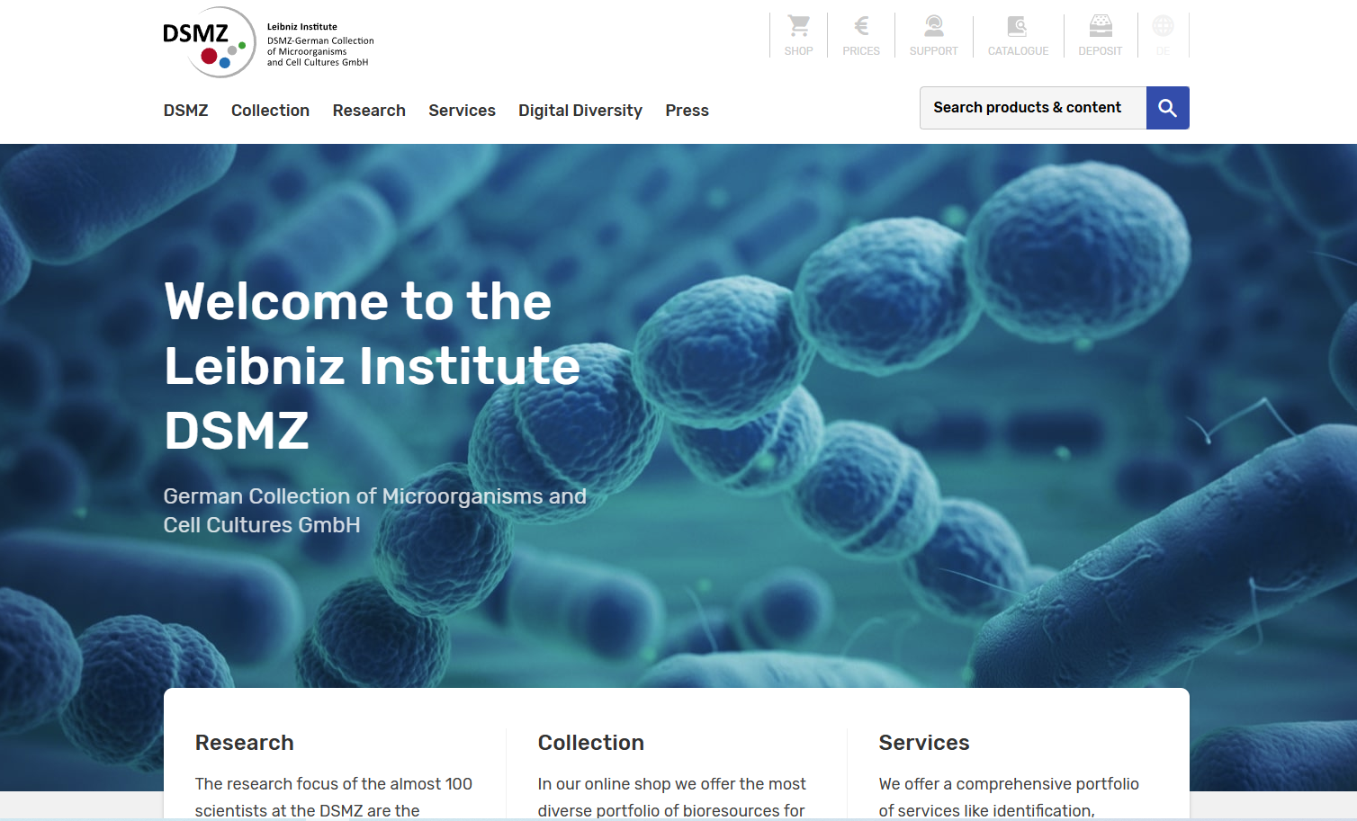 DSMZ成立于1969年,是德國的國家菌種保藏中心。該中心一直致力于細菌、真菌、質(zhì)粒、抗菌素、人體和動物細胞、植物病毒等的分類、鑒定和保藏工作。作為世界上最大的保藏中心之一,DSMZ目前收藏超過70,000種產(chǎn)品,包括約31,000種不同的細菌和6,500種真菌菌株,830種人和動物細胞系,1,500種植物病毒和抗血清,2,000種質(zhì)粒和噬菌體以及13,000種不同類型的細菌基因組DNA。