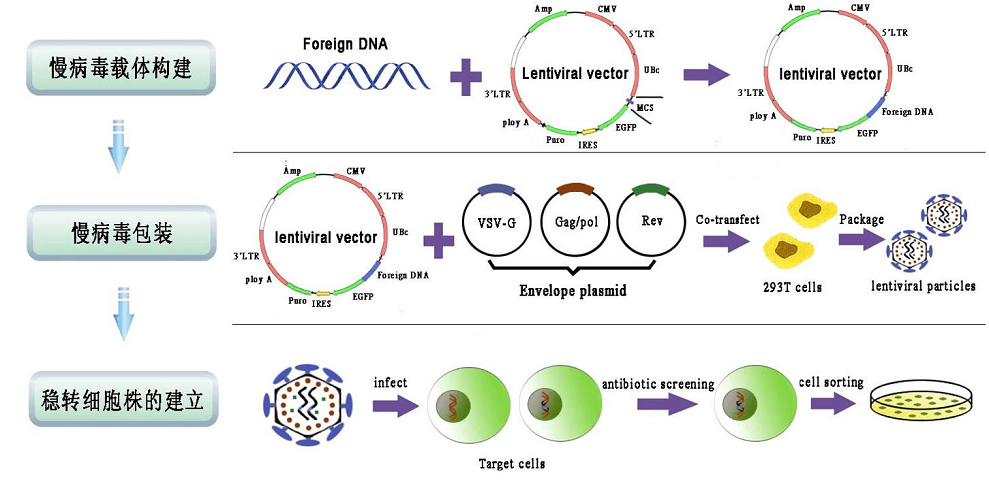 穩(wěn)定細(xì)胞株構(gòu)建的基本原理是用基因?qū)牍ぞ呋蚧蚓庉嫻ぞ?,改造原始?xì)胞基因組,使改造后的細(xì)胞具有某些特定表型,并經(jīng)過(guò)抗性篩選或其他篩選方法,使其表型能長(zhǎng)期傳代穩(wěn)轉(zhuǎn)。