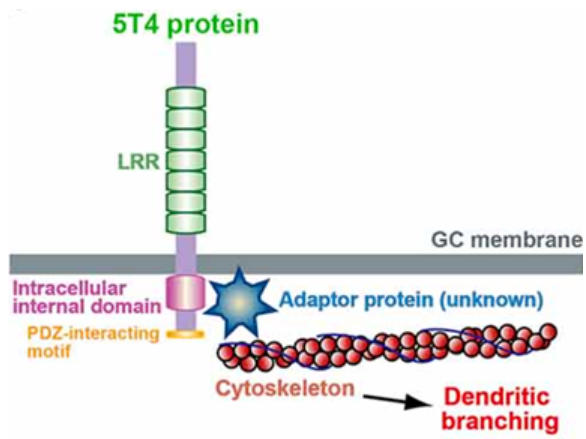 人類和小鼠的5T4蛋白的同源性可達(dá)81%。大量的證據(jù)顯示5T4與不同的生理、病理過程密切相關(guān),如細(xì)胞間連接、細(xì)胞形態(tài)及運動、細(xì)胞黏附能力、細(xì)胞膜的完整性等等。5T4廣泛表達(dá)于胚胎發(fā)育期的各種滋養(yǎng)層細(xì)胞,但在正常成人組織中表達(dá)極少,只在幾種上皮細(xì)胞中表達(dá),但卻在很多癌癥細(xì)胞中有表達(dá),包括結(jié)腸癌、胃癌、卵巢癌、口腔癌、前列腺癌、肺癌、腎癌、子宮癌等。這一特點使其成為了一種有吸引力的腫瘤免疫治療新靶點。