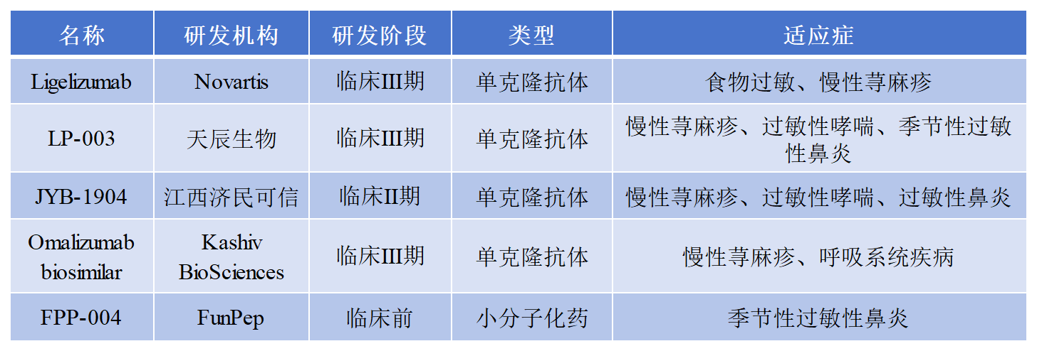 2025年3月2日,中國(guó)創(chuàng)新型生物制藥企業(yè)天辰生物醫(yī)藥(蘇州)有限公司公布了其自主研發(fā)的新一代抗IgE抗體LP-003治療慢性蕁麻疹的II期臨床中期數(shù)據(jù)。結(jié)果顯示,LP-003在關(guān)鍵療效指標(biāo)上優(yōu)于現(xiàn)有抗IgE療法奧馬珠單抗,且展現(xiàn)出長(zhǎng)效優(yōu)勢(shì),或?qū)⒊蔀槿蚩笽gE治療領(lǐng)域的顛覆性藥物。據(jù)報(bào)道,Ligelizumab是諾華通過(guò)親和力改造的靶向Ig E的全人源IgG1k單抗,與奧馬珠單抗同為第一代IgE抗體,對(duì)IgE/FcεRI信號(hào)傳導(dǎo)阻滯明顯增強(qiáng)。JYB1904是濟(jì)民可信自主研發(fā)的靶向IgE重組人源化單克隆抗體創(chuàng)新藥,研究結(jié)果顯示其親和力更高,人源化程度更高,具有更優(yōu)的穩(wěn)定性。