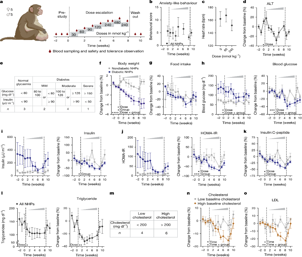 在患有心臟代謝疾病的肥胖的恒河猴中,NK2R激動(dòng)劑顯著降低了體重、血糖、甘油三酯和膽固醇水平,并改善了胰島素抵抗,這些結(jié)果表明NK2R激動(dòng)劑在非人靈長(zhǎng)類動(dòng)物中也具有潛在的治療潛力。