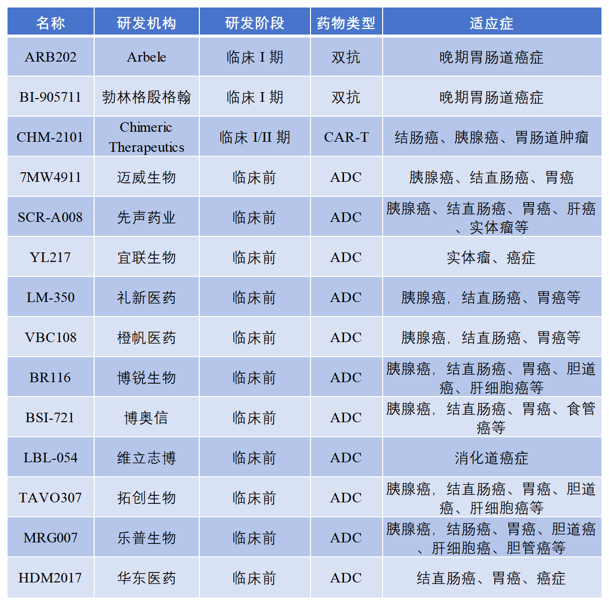 在最近的2025年美國癌癥研究協(xié)會(AACR)公布的研究摘要中,超200款來自中國的創(chuàng)新藥中,消化道腫瘤的CDH17靶點最為熱門,僅ADC領域相關研究就多達11項。作為實體瘤治療領域的新興靶點,CDH17正以雙抗、CAR-T、ADC等多賽道并行的姿態(tài)掀起研發(fā)浪潮。以下為針對CDH17靶點藥物在研進展的不完全統(tǒng)計: