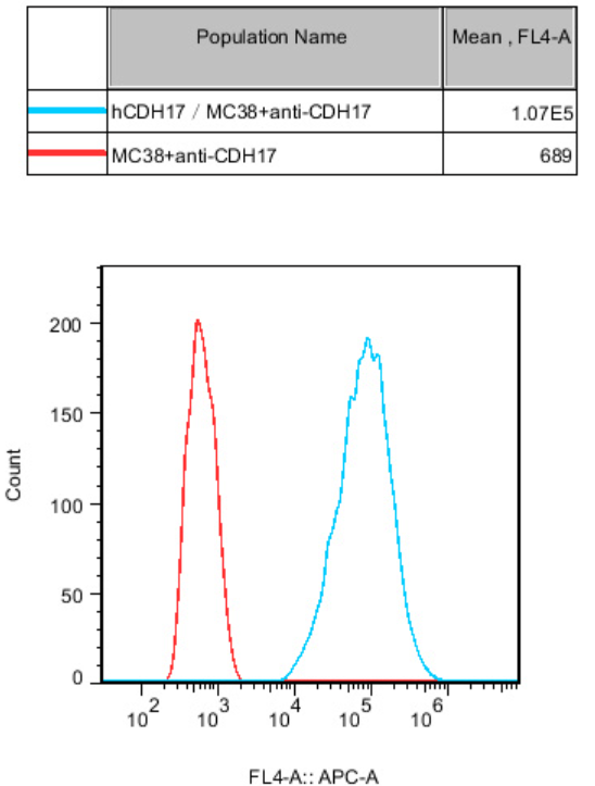 Figure 5. Recombinant hCDH17/MC38 stably expressing CDH17.